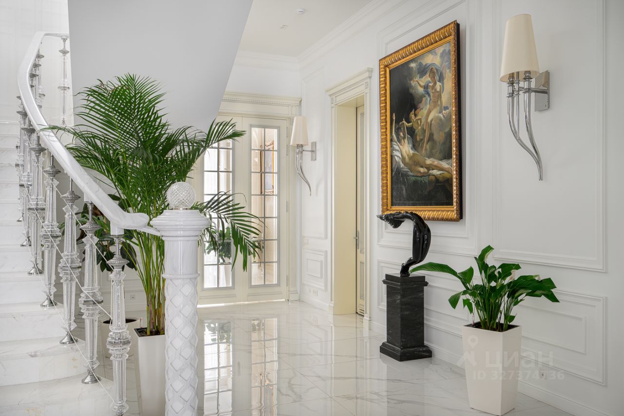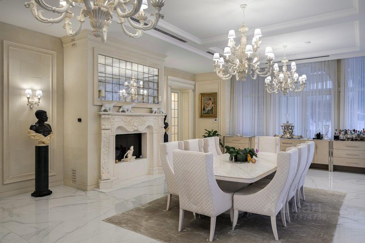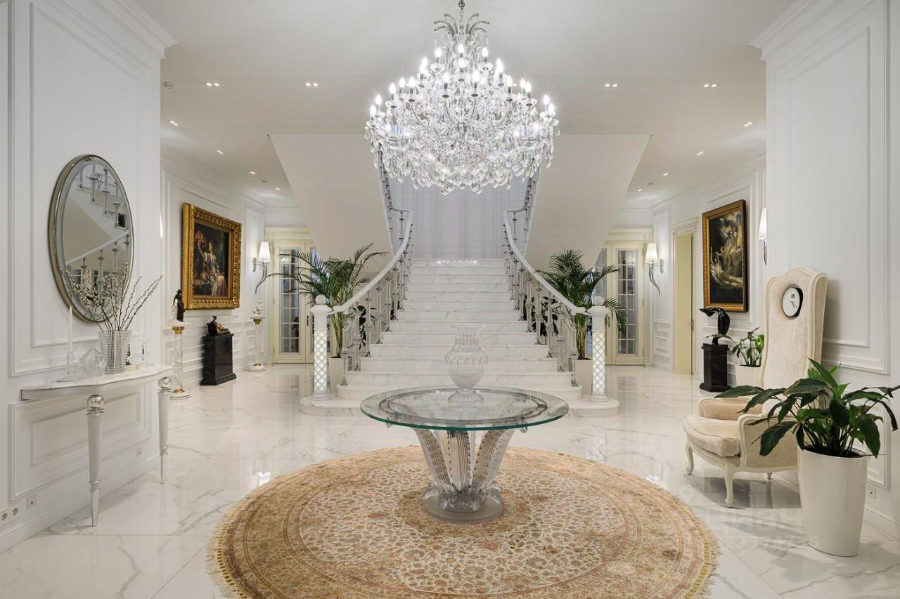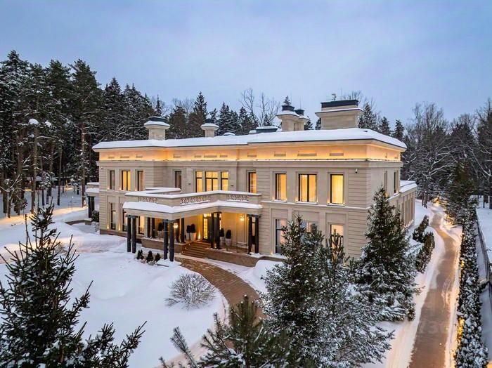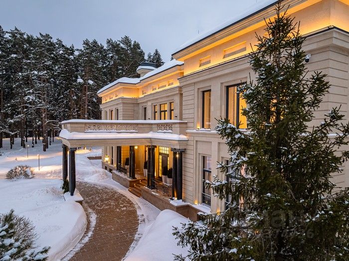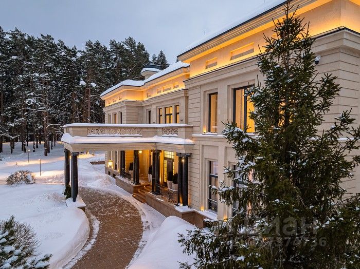 Элегантный архитектурный ансамбль дома гармонично сочетается с разнообразными ландшафтными зонами здесь и роскошный парк с фонтанами, красивыми каменными дорожками, идеально подобранными светильниками, различными кустарниками, деревьями и изысканными флористическими композициями, а лесная часть участка превращена в приватный лесопарк это невероятной красоты застеленный газоном сосновый бор, в котором расположились красивая каменная беседка, пруд с рыбками, и множество тропинок для прогулки, выполненных камнем. Также есть свой выход в лесной массив, где также много тропинок для прогулок. Архитектура дома и всех дополнительных строений выполнена в стиле неустаревающей неоклассики. Фасады отделаны редким высокопрочным натуральным камнем фельзитом. Пространство дома организованно по принципу максимального комфорта жизни с сохранением приватности для каждого члена семьи. Здесь действительно царит атмосфера аристократического уюта. На первом этаже из роскошного центрального холла открывается вид на отделанную мрамором белоснежную парадную лестницу. В центре дома, расположены одна из гостиных с большим камином, столовой и выходом на террасу, кабинет с камином, отделанный деревом. Также, здесь шикарная большая столовая для приемов находится рядом с просторной отдельной кухней и еще одной гостиной с роялем. Из всех этих помещений есть выход на накрытую террасу с большим камином идеально для отдыха и приёма гостей в тёплое время года. В правом крыле дома расположились гостевая спальня с ванной комнатой и гардеробной, и СПА-зона с сауной, комнатой отдыха, с\у и бассейном с панорамным арочным остеклением и выходом на террасу. Также, при входе есть большая гардеробная и просторный красивый с\у, отделанный камнем. Пространство второго этажа симметрично разделено на приватные спальни, которые объединяет светлая гостиная. Здесь расположен детский блок, состоящий из 4-х спален: 3 детские спальни с ванными комнатами и гардеробными, спальня для няни с с\у, и комната для занятий. И хозяйский блок здесь отдельный приватный холл, просторная спальня с панорамным остекление с 2-х сторон и выходом на большую террасу, 2 больших гардеробных женская и мужская, ванная комната и душевая. На цокольном этаже расположились: винная комната с климат-контролем, бильярдная комната, салон красоты, детская игровая, спортзал, 2 гардеробных, кладовая, хозяйственная комната (постирочная), технические помещения.