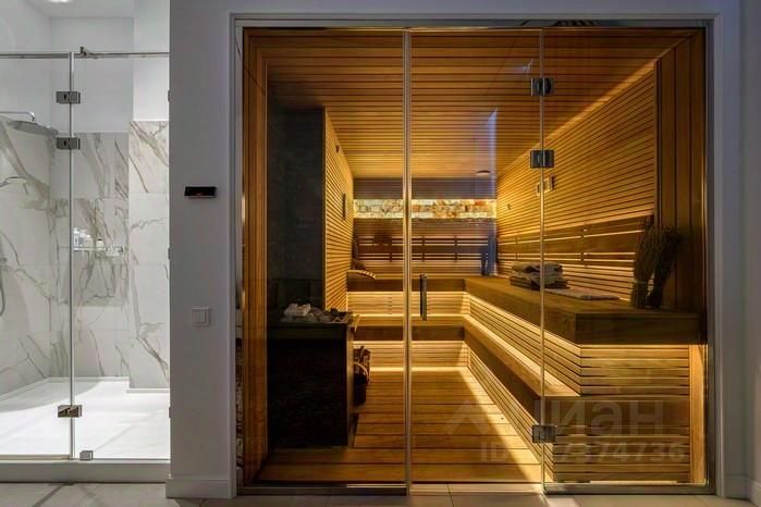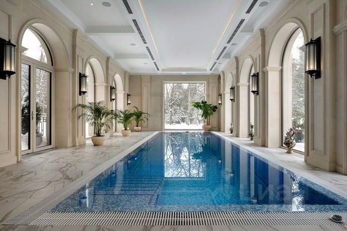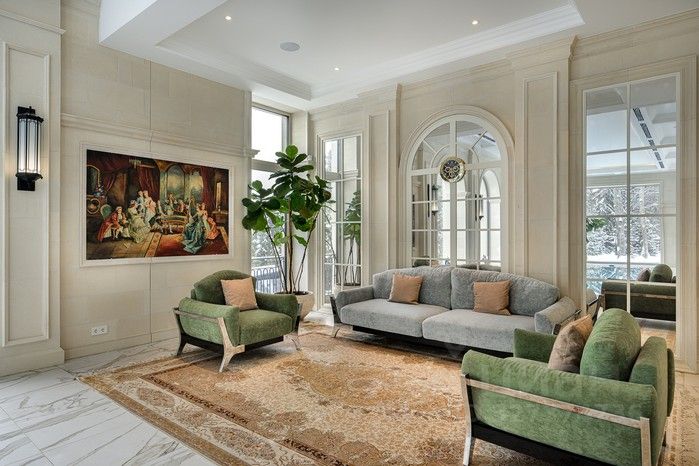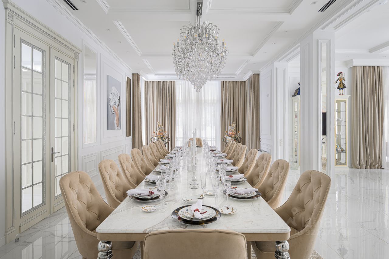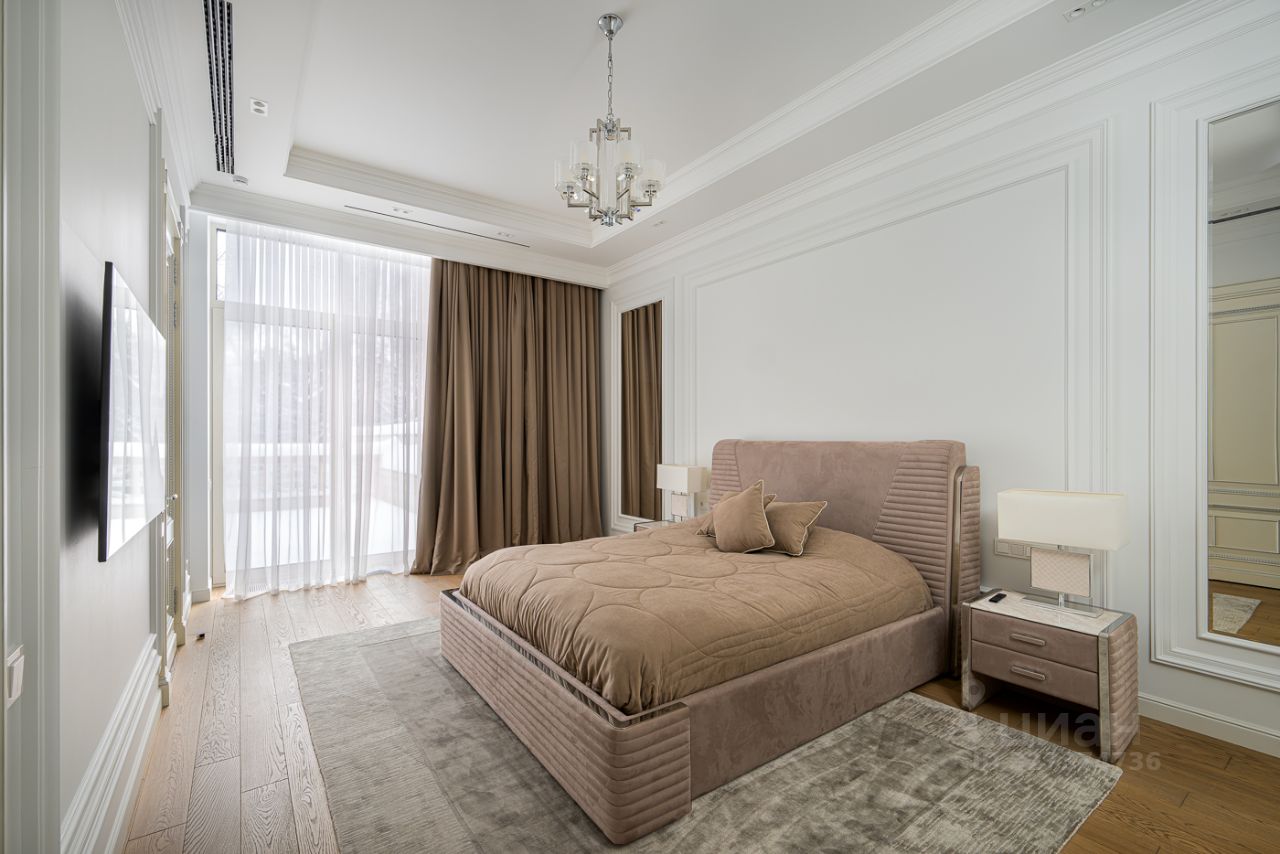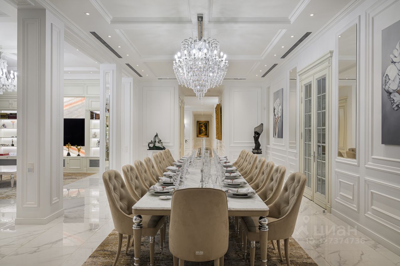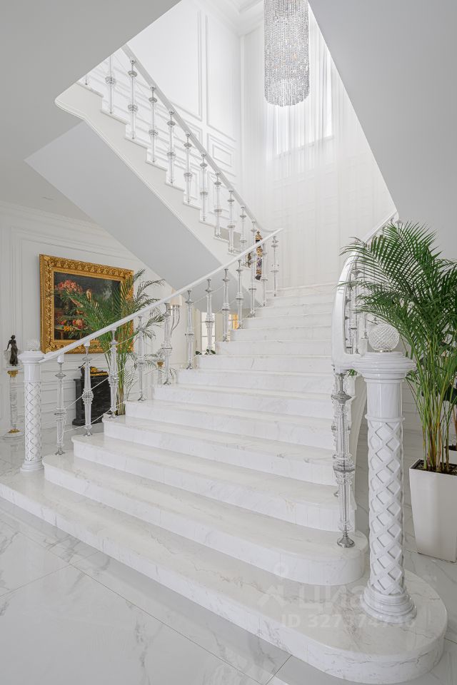 Элегантный архитектурный ансамбль дома гармонично сочетается с разнообразными ландшафтными зонами здесь и роскошный парк с фонтанами, красивыми каменными дорожками, идеально подобранными светильниками, различными кустарниками, деревьями и изысканными флористическими композициями, а лесная часть участка превращена в приватный лесопарк это невероятной красоты застеленный газоном сосновый бор, в котором расположились красивая каменная беседка, пруд с рыбками, и множество тропинок для прогулки, выполненных камнем. Также есть свой выход в лесной массив, где также много тропинок для прогулок. Архитектура дома и всех дополнительных строений выполнена в стиле неустаревающей неоклассики. Фасады отделаны редким высокопрочным натуральным камнем фельзитом. Пространство дома организованно по принципу максимального комфорта жизни с сохранением приватности для каждого члена семьи. Здесь действительно царит атмосфера аристократического уюта. На первом этаже из роскошного центрального холла открывается вид на отделанную мрамором белоснежную парадную лестницу. В центре дома, расположены одна из гостиных с большим камином, столовой и выходом на террасу, кабинет с камином, отделанный деревом. Также, здесь шикарная большая столовая для приемов находится рядом с просторной отдельной кухней и еще одной гостиной с роялем. Из всех этих помещений есть выход на накрытую террасу с большим камином идеально для отдыха и приёма гостей в тёплое время года. В правом крыле дома расположились гостевая спальня с ванной комнатой и гардеробной, и СПА-зона с сауной, комнатой отдыха, с\у и бассейном с панорамным арочным остеклением и выходом на террасу. Также, при входе есть большая гардеробная и просторный красивый с\у, отделанный камнем. Пространство второго этажа симметрично разделено на приватные спальни, которые объединяет светлая гостиная. Здесь расположен детский блок, состоящий из 4-х спален: 3 детские спальни с ванными комнатами и гардеробными, спальня для няни с с\у, и комната для занятий. И хозяйский блок здесь отдельный приватный холл, просторная спальня с панорамным остекление с 2-х сторон и выходом на большую террасу, 2 больших гардеробных женская и мужская, ванная комната и душевая. На цокольном этаже расположились: винная комната с климат-контролем, бильярдная комната, салон красоты, детская игровая, спортзал, 2 гардеробных, кладовая, хозяйственная комната (постирочная), технические помещения.