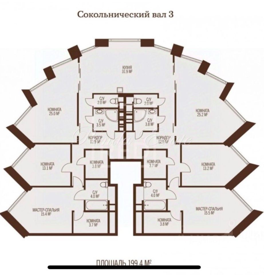 ID 9765 Продается эксклюзивный объект! Единственный в такой большой площади (объединение двух зеркальных) с великолепным панорамным видом на парк Сокольники. Планировка свободная. Остекление: Премиальные двухкамерные стеклопакеты Schuco (алюминиевый профиль, энергосберегающее напыление), качественная фурнитура. Очень тихо изнутри апартамента! Инфраструктура и технологии комплекса: Централизованная система кондиционирования Daikin + вентиляция. 4 премиальных лифта Schindler (с выходом в подземный паркинг). Безопасность: Дизайнерское гранд-лобби с консьержем, охрана 24/7. Круглосуточный Room-service. Подземный паркинг: Возможность покупки 2 машино-мест за дополнительную стоимость. Благоустройство: охраняемая территория, автомойка, детская площадка, на 1 этаже ритейл (магазин Вкусвилл). Расположение и транспорт: граница с парком ''Сокольники'' (вход в парк в 400 метрах). Метро: пешком 15 мин до м. Сокольники (прогулка вдоль парка) и м. Рижская - 2 остановки. Транспорт: удобный съезд на ТТК (Рижская эстакада). Окружение и развитие района: Парк ''Сокольники'' (велодорожки, пруды, спортплощадки, катки, музеи). Инфраструктура района: Детский сад, рейтинговая школа, ТЦ, ледовый дворец, конный клуб. Перспектива (Важный бонус!): Рядом запускается новый проект ''Solos'' (по границе с ТТК). Он закроет Резиденции от ТТК и добавит району качественной инфраструктуры, улучшит видовые характеристики. 1 взрослый собственник.