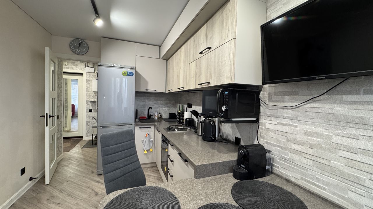 ID 8811 ВПЕРВЫЕ ПОСЛЕ РЕМОНТА сдается на длительный срок современная и стильная однокомнатная квартира общей площадью 35,6 кв.м., ПОЛНОСТЬЮ УКОМПЛЕКТОВАНА И ГОТОВАЯ К ПРОЖИВАНИЮ. Среди прочего : газовая варочная панель, духовой шкаф, большой холодильник, стиральная машина, посудомоечная машина., телевизор, пылесос и т.д. Окна выходят на восток. Вся необходимая инфраструктура в пешей доступности. Рассматриваем добросовестных и платежеспособных арендаторов. Проживание с детьми или домашними питомцами обсуждается.