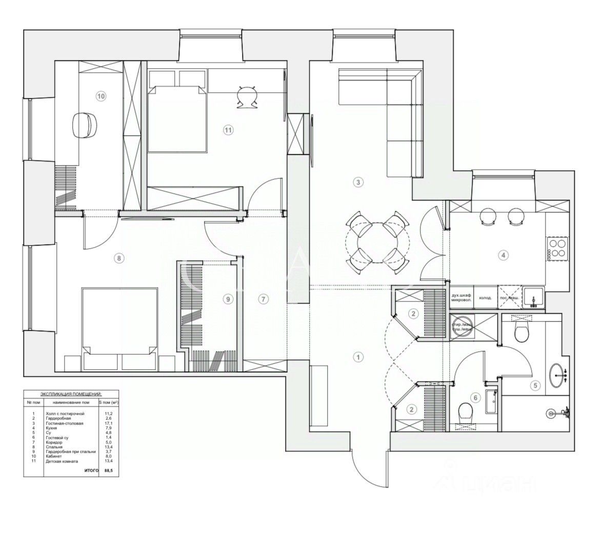 Новый дизайнерский ремонт! Функциональная планировка: - хозяйская спальня с вместительной гардеробной - детская или гостевая комната - кабинет - два санузла, один из них с душевой кабиной - две гардеробные комнаты при входе в квартиру, для удобства и хранения вещей - отдельно расположена кухня - просторная гостинная комната Кондиционеры в каждой комнате. Большие окна с электрофрамугами, много света.