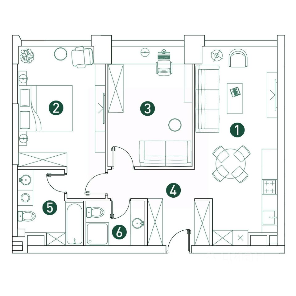 Большой выбор эргономичных планировок. Собственный двор-парк 20 000 м² с фонтаном, детскими и игровыми площадками, воркаут-зоной, живописным парящим мостом, кафе и беседками для отдыха.
