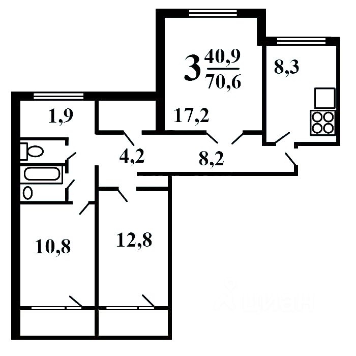Сдается в долгосрочную аренду 3-х комнатная квартира, общая площадь -71,5 м.кв.: В Квартире 3 (три) Балкона, Все комнаты изолированные: -17,2 м.кв., -12,8 м.кв с балконом (не застеклен), -10,8 м.кв. с балконом (не застеклен), Просторная квартира, Сделан косметический ремонт, Для проживания имеется вся необходимая мебель и техника, Санузел раздельный, На окнах Стеклопакеты, Квартира распашная- (окна выходят на обе стороны). Дом оборудован двумя пассажирскими лифтами и мусоропроводом,