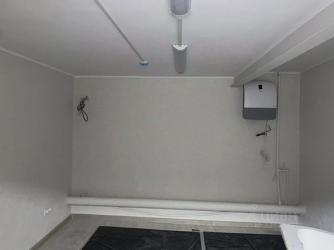 На полу плитка. На стенах отделка декоративной штукатуркой.