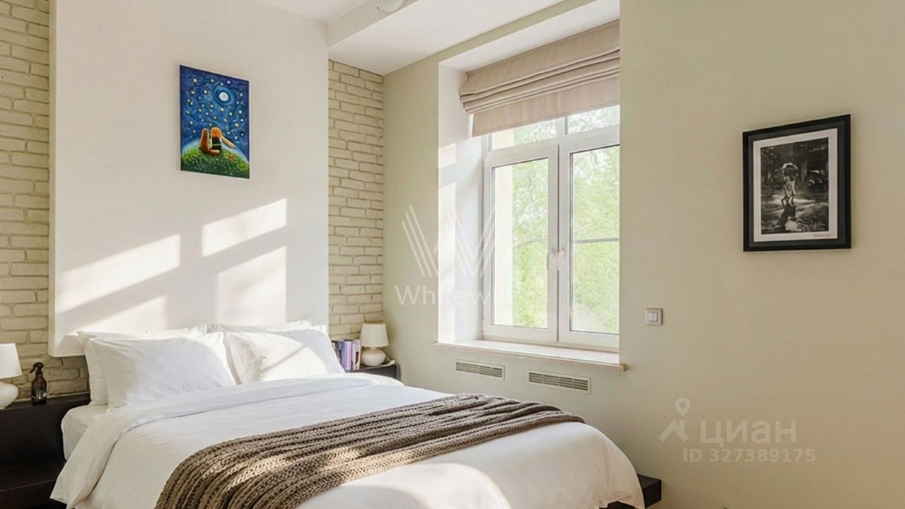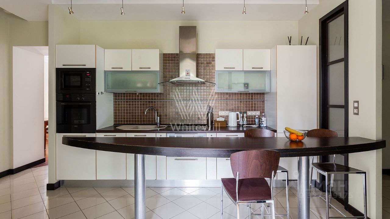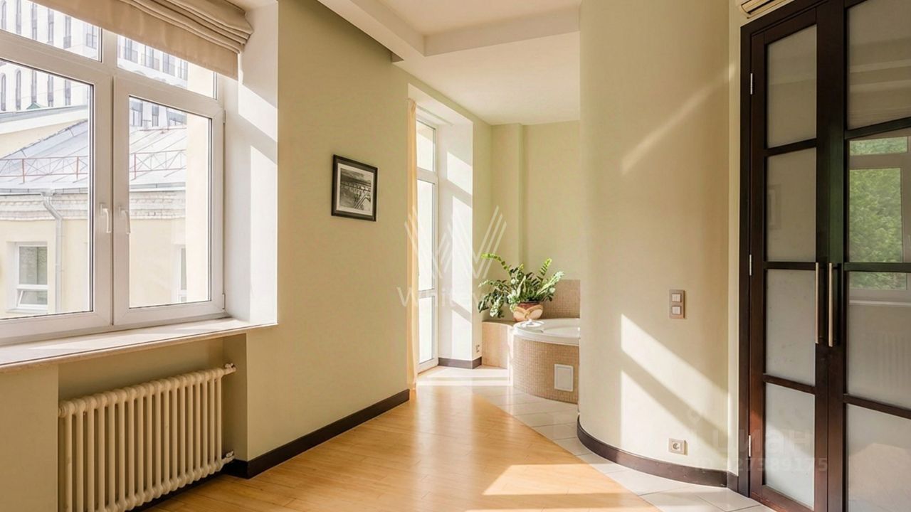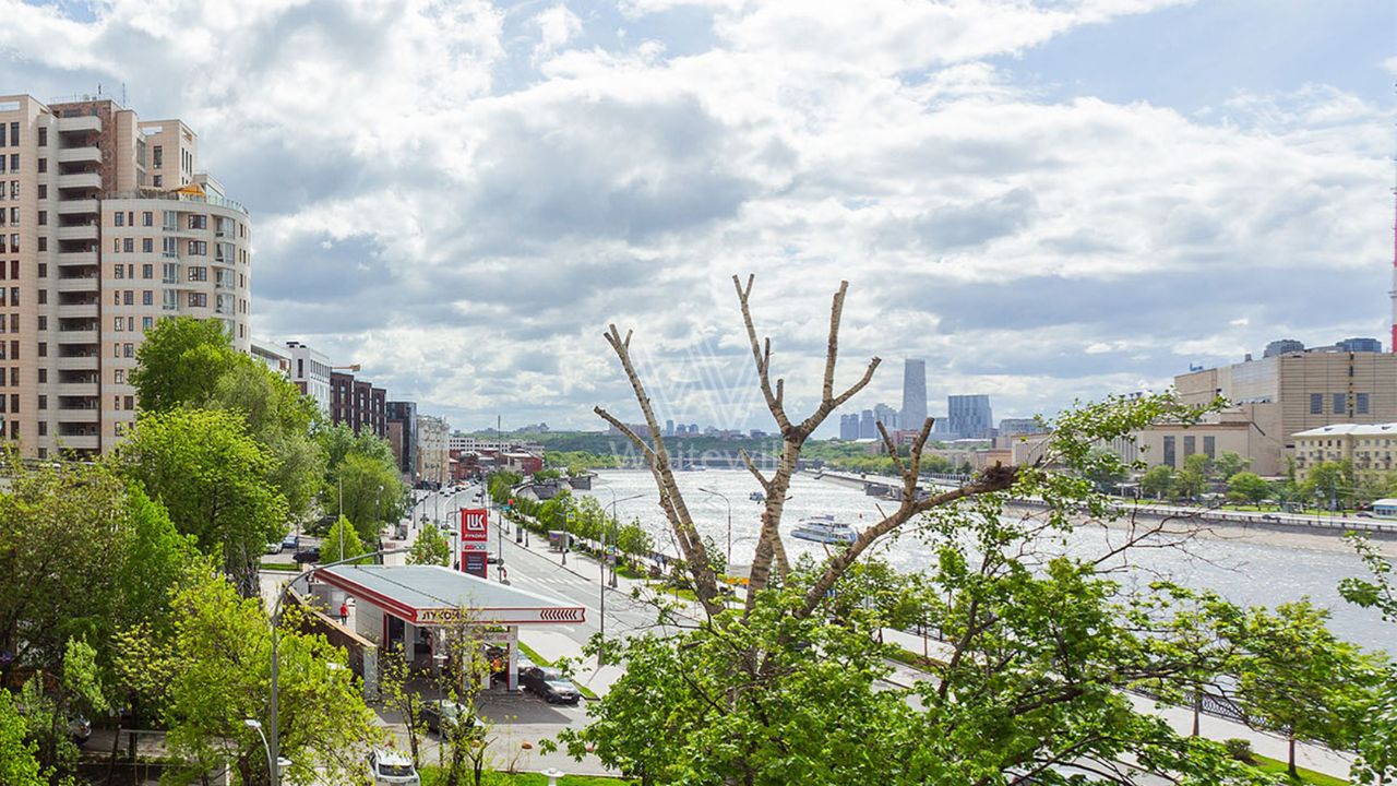 Просторная квартира c одной спальней общей площадью 80 м² в доме ''Саввинская набережная, 3'' на берегу Москвы-реки в Хамовниках. Интерьер оформлен в современном стиле в светлых лаконичных светлых тонах. Планировка: гостиная с выходом на балкон, кухня-столовая, просторная спальня со своей ванной комнатой и выходом на балкон, санузел с душем, две гардеробные, кладовая и холл. Высота потолков 3,2 метра. Квартира полностью укомплектована мебелью и бытовой техникой, установлена система кондиционирования. Окна ориентированы на две стороны света, открываются панорамные виды на Москву-реку и во двор.