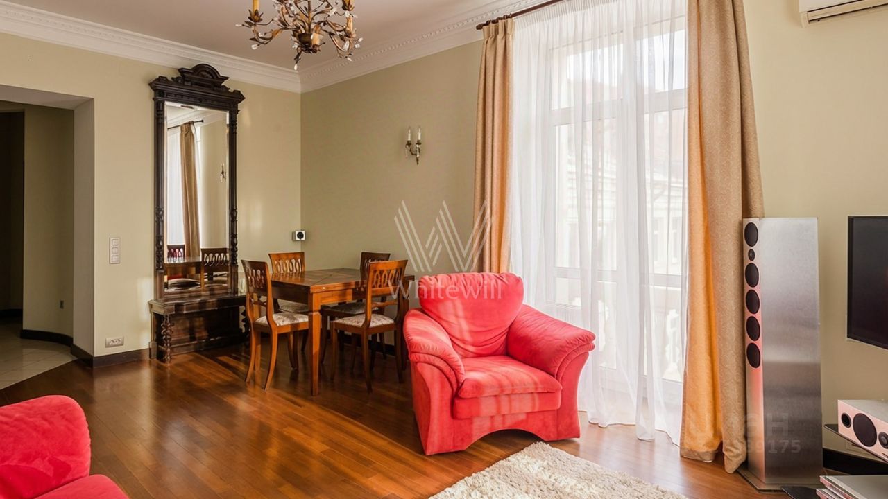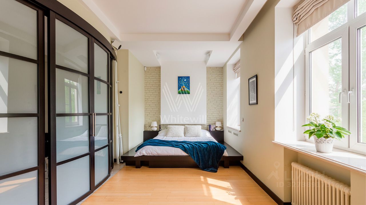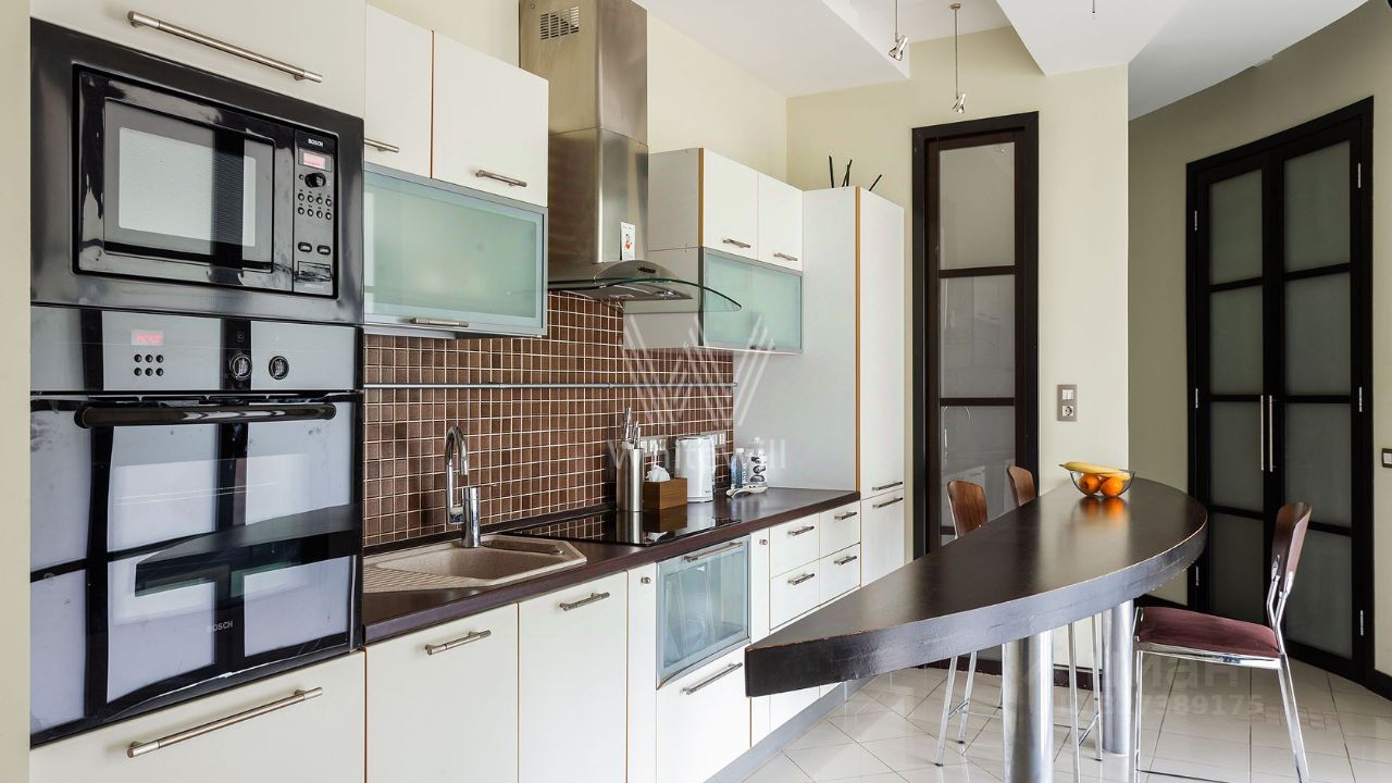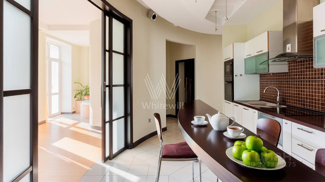 Просторная квартира c одной спальней общей площадью 80 м² в доме ''Саввинская набережная, 3'' на берегу Москвы-реки в Хамовниках. Интерьер оформлен в современном стиле в светлых лаконичных светлых тонах. Планировка: гостиная с выходом на балкон, кухня-столовая, просторная спальня со своей ванной комнатой и выходом на балкон, санузел с душем, две гардеробные, кладовая и холл. Высота потолков 3,2 метра. Квартира полностью укомплектована мебелью и бытовой техникой, установлена система кондиционирования. Окна ориентированы на две стороны света, открываются панорамные виды на Москву-реку и во двор.