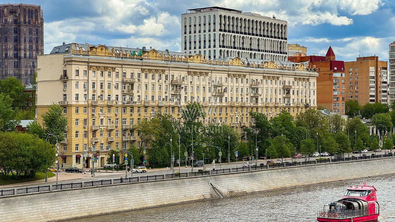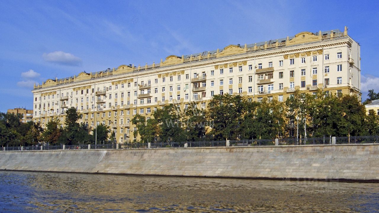 Главное о доме. Сталинский дом на первом ряду у реки. Кирпич, индивидуальный проект, девять этажей. Построен в конце сороковых, с выразительными чертами сталинского ампира: пилястры, треугольные карнизы, небольшие балконы с балюстрадами и арочные ниши на фасаде. Высота потолков и крупные окна дают много воздуха и света, часть квартир смотрит на Москву-реку. Во дворе организована парковка для жителей, въезд под шлагбаумом. Адрес для тех, кто хочет жить у воды и ходить по делам пешком, сохраняя ощущение старого центра.