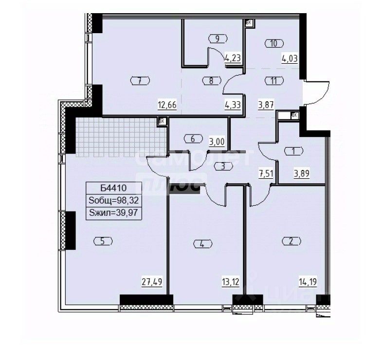 Общая площадь99 м2