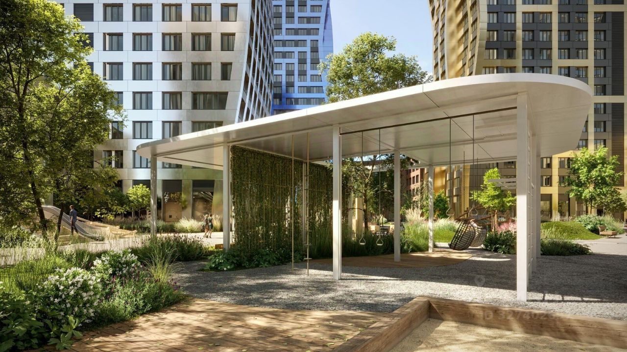 Благоустройство: Внутренний двор комплекса разработан совместно с бюро GAFA. Основная идея - создать аналог Центрального парка в Нью-Йорке, гармонично сочетая высотные здания и большое изолированное парковое пространство. Вся площадь двора-парка будет огорожена и составит более 2 га, из которых 45% - озеленение. Одним из самых важных ландшафтных элементов здесь станет небольшая речка, наполняющаяся во время дождя. Вокруг неё появится сеть из островов, внутри которых расположатся тематические зоны спорта и отдыха.