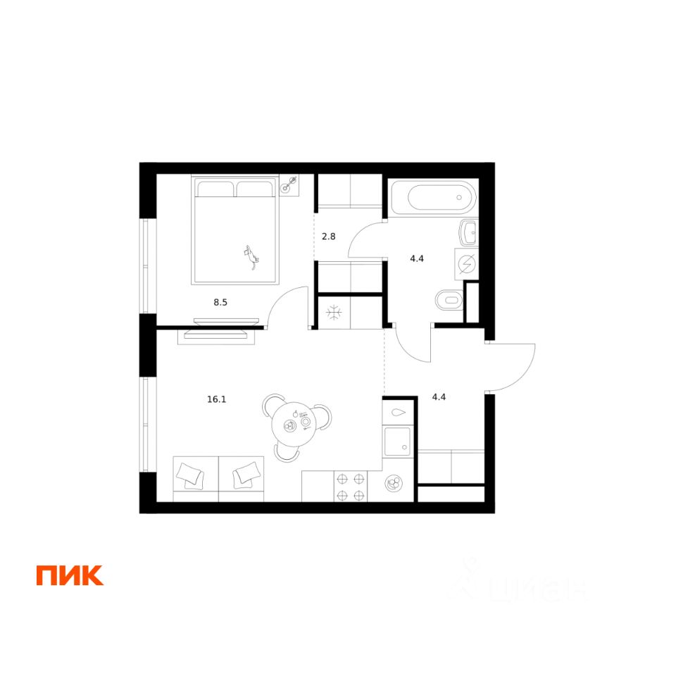 Продаётся 1-комн. квартира площадью 36,2 кв.м на 16 этаже 16 этажного дома (Корпус 2.3, Секция 5) проекта ПИК Москворечье. Светлый просторный подъезд на уровне земли, функциональная планировка, большие окна, c отделкой.