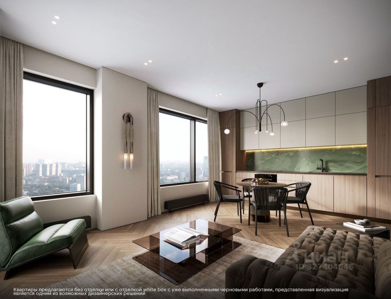 • дизайнерские лобби от бюро ABOVE ARCHITECTURE с панорамными окнами, интерьерами в теплой цветовой гамме и мягкой зоной ожидания располагаются в каждой башне,
