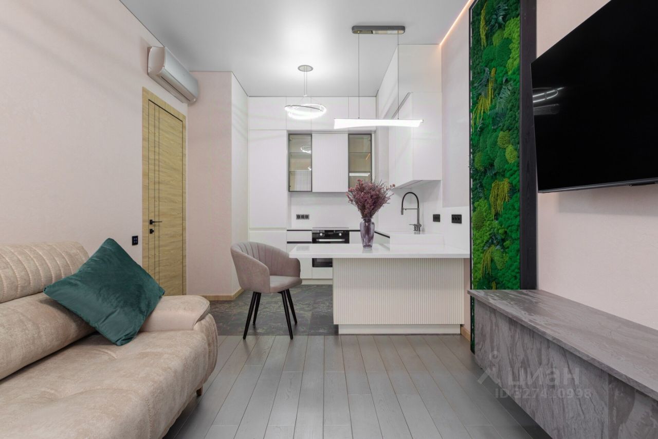 Планировка: просторная кухня гостиная 21 м2 с выделенной рабочей зоной, спальня - 12м2, с/у совмещенный. Окна выходят во двор.