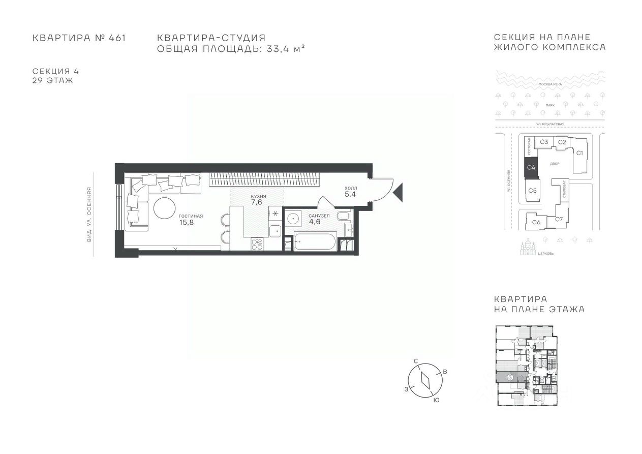Успейте стать частью уникального проекта премиум-класса на западе Москвы! В продаже квартиры: 1-комнатные от 28,1 м², 2-комнатные от 61,2 м², 3-комнатные от 86,6 м², 4-комнатные от 110,7 м². Первый взнос от 30%! Рассрочка на 2 года без переплат! Крылатское 33 это премиальный жилой комплекс от специализированного застройщика ООО ''Сияние''. Самый высокий небоскрёб в районе, достигающий отметки в 150 метров и малоэтажный клубный формат высотой от 42 метров на приватной территории площадью 1,4 га. Великолепные виды на излучину Москва-реки, Живописный мост и урбанистический облик города. Эксклюзивные форматы квартир с панорамным остеклением и патио-террасами. Двухуровневый паркинг на 271м/м, премиальные входные группы, ресторан высокой кухни, детский сад и эко-маркет на территории комплекса. Эксклюзивные преимущества: доступ к wellness-центру, коворкингу и клубной гостиной только для резидентов. Над проектом работали именитые российские архитектурные бюро: архитектор проекта бюро ''Остоженка'', планировочные решения от бюро Александры Федоровой. Расположение Пешком: 5-7 минут - до парка Звезд, Крылатского парка и набережной Москвы-реки, 15 минут - до метро Крылатское Арбатско-Покровской линии, 15 минут - до пристани Крылатская. На автомобиле: 10 минут - до Третьего транспортного кольца, 15 минут - до Садового кольца и Москва- Сити, 20-30 минут - до Аэропорта Внуково, 30-40 минут - до Аэропорта Шереметьево. В 300 метрах от комплекса - удобная транспортная развязка с проспектом Маршала Жукова, обеспечивающая легкий доступ к ключевым магистралям. Благоустройство: