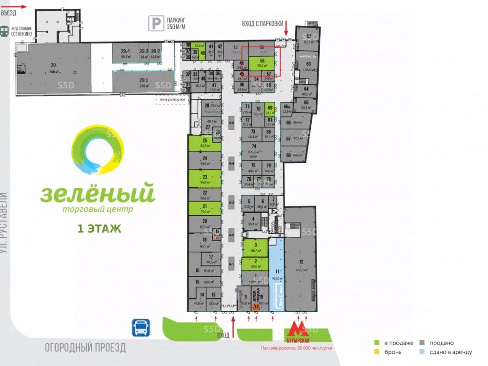 Продается торговое помещение в СВАО по адресу: г.Москва, Огородный проезд, 10. У выхода из метро ''Бутырская'', расположился ТЦ ''Зелёный'', это новый, современный торговый центр районного значения в шаговой доступности от ж/д станции ''Останкино''. Первая линия домов Огородного проезда, на пересечении с улицей Руставели. Прекрасная визуализация в любую погоду и мега интенсивный трафик, дополнительно обеспечен, расположенным офисом: ''Яндекс-Еда'', ''Яндекс-Такси''.