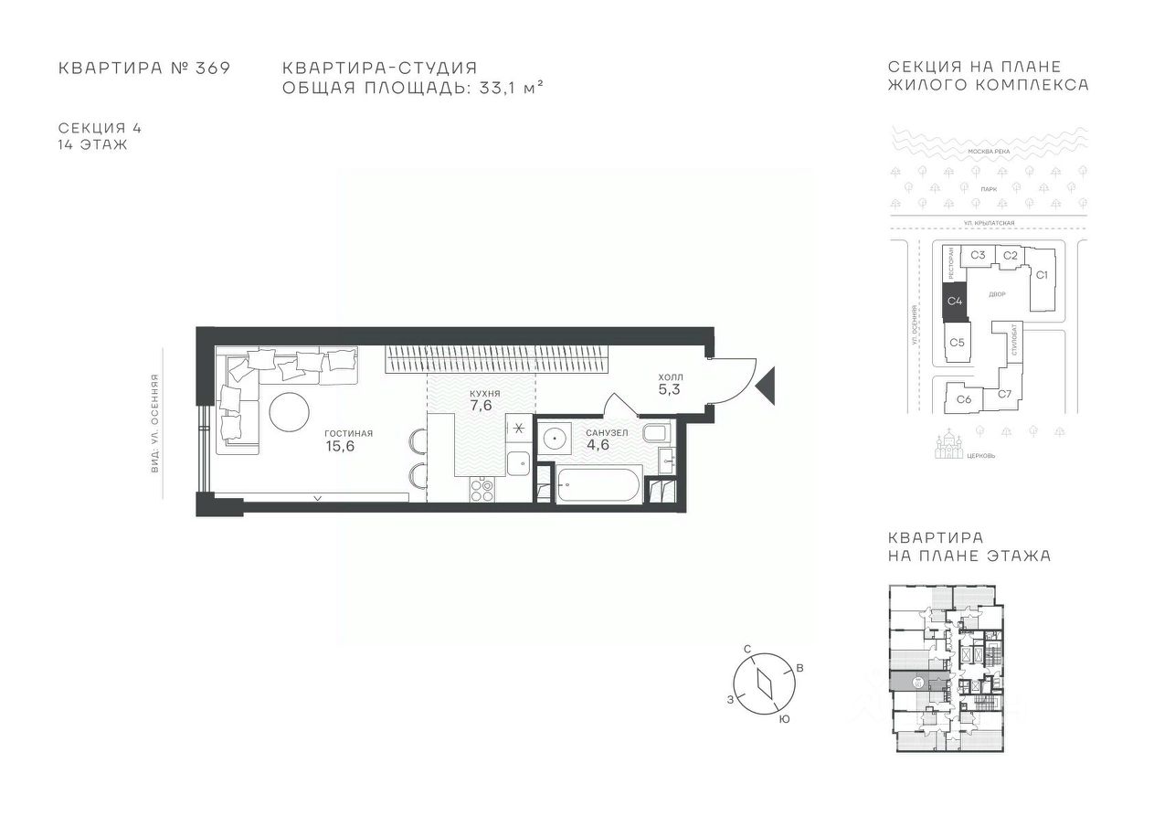 Успейте стать частью уникального проекта премиум-класса на западе Москвы! В продаже квартиры: 1-комнатные от 28,1 м², 2-комнатные от 61,2 м², 3-комнатные от 86,6 м², 4-комнатные от 110,7 м². Первый взнос от 30%! Рассрочка на 2 года без переплат! Крылатское 33 это премиальный жилой комплекс от специализированного застройщика ООО ''Сияние''. Самый высокий небоскрёб в районе, достигающий отметки в 150 метров и малоэтажный клубный формат высотой от 42 метров на приватной территории площадью 1,4 га. Великолепные виды на излучину Москва-реки, Живописный мост и урбанистический облик города. Эксклюзивные форматы квартир с панорамным остеклением и патио-террасами. Двухуровневый паркинг на 271м/м, премиальные входные группы, ресторан высокой кухни, детский сад и эко-маркет на территории комплекса. Эксклюзивные преимущества: доступ к wellness-центру, коворкингу и клубной гостиной только для резидентов. Над проектом работали именитые российские архитектурные бюро: архитектор проекта бюро ''Остоженка'', планировочные решения от бюро Александры Федоровой. Расположение Пешком: 5-7 минут - до парка Звезд, Крылатского парка и набережной Москвы-реки, 15 минут - до метро Крылатское Арбатско-Покровской линии, 15 минут - до пристани Крылатская. На автомобиле: 10 минут - до Третьего транспортного кольца, 15 минут - до Садового кольца и Москва- Сити, 20-30 минут - до Аэропорта Внуково, 30-40 минут - до Аэропорта Шереметьево. В 300 метрах от комплекса - удобная транспортная развязка с проспектом Маршала Жукова, обеспечивающая легкий доступ к ключевым магистралям. Благоустройство: