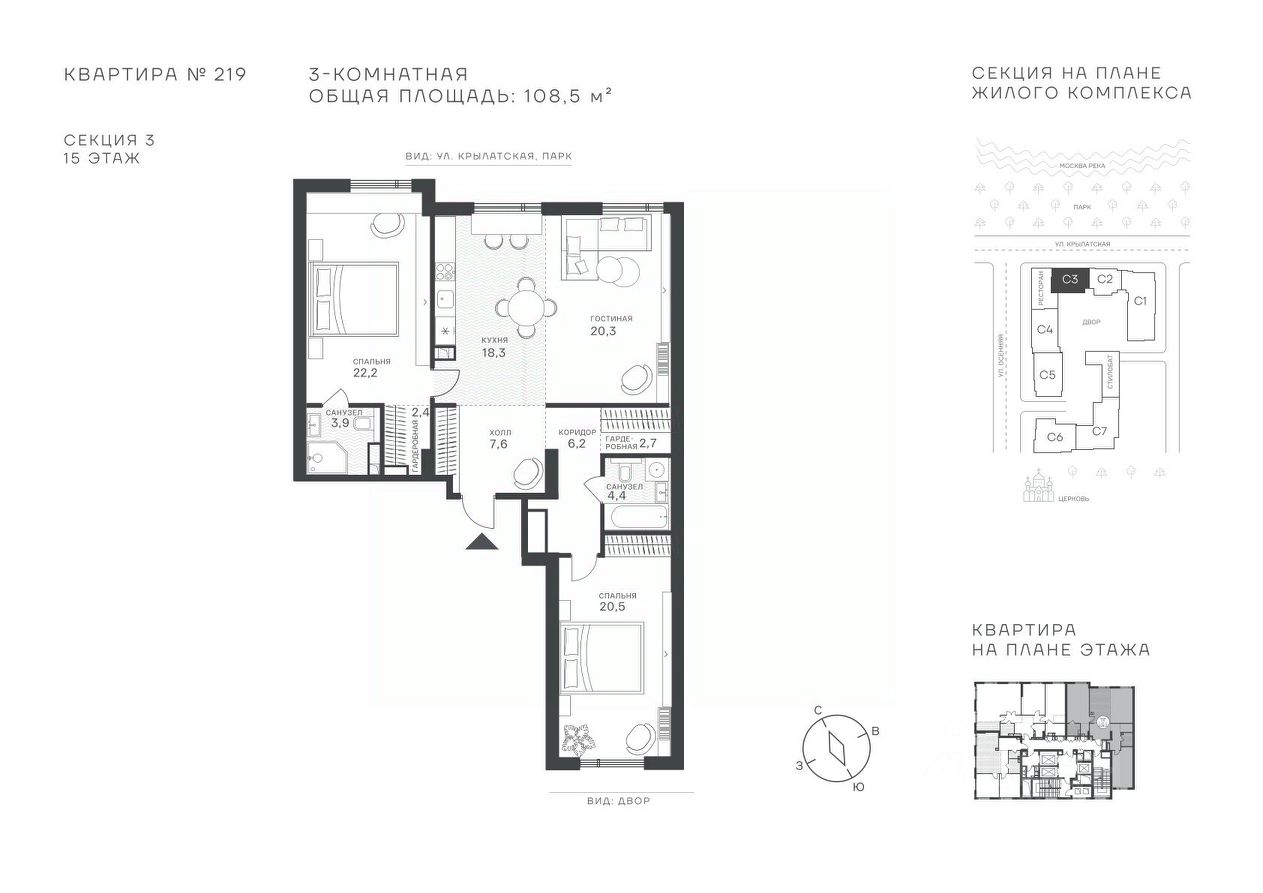 Успейте стать частью уникального проекта премиум-класса на западе Москвы! В продаже квартиры: 1-комнатные от 28,1 м², 2-комнатные от 61,2 м², 3-комнатные от 86,6 м², 4-комнатные от 110,7 м². Первый взнос от 30%! Рассрочка на 2 года без переплат! Крылатское 33 это премиальный жилой комплекс от специализированного застройщика ООО ''Сияние''. Самый высокий небоскрёб в районе, достигающий отметки в 150 метров и малоэтажный клубный формат высотой от 42 метров на приватной территории площадью 1,4 га. Великолепные виды на излучину Москва-реки, Живописный мост и урбанистический облик города. Эксклюзивные форматы квартир с панорамным остеклением и патио-террасами. Двухуровневый паркинг на 271м/м, премиальные входные группы, ресторан высокой кухни, детский сад и эко-маркет на территории комплекса. Эксклюзивные преимущества: доступ к wellness-центру, коворкингу и клубной гостиной только для резидентов. Над проектом работали именитые российские архитектурные бюро: архитектор проекта бюро ''Остоженка'', планировочные решения от бюро Александры Федоровой. Расположение Пешком: 5-7 минут - до парка Звезд, Крылатского парка и набережной Москвы-реки, 15 минут - до метро Крылатское Арбатско-Покровской линии, 15 минут - до пристани Крылатская. На автомобиле: 10 минут - до Третьего транспортного кольца, 15 минут - до Садового кольца и Москва- Сити, 20-30 минут - до Аэропорта Внуково, 30-40 минут - до Аэропорта Шереметьево. В 300 метрах от комплекса - удобная транспортная развязка с проспектом Маршала Жукова, обеспечивающая легкий доступ к ключевым магистралям. Благоустройство: