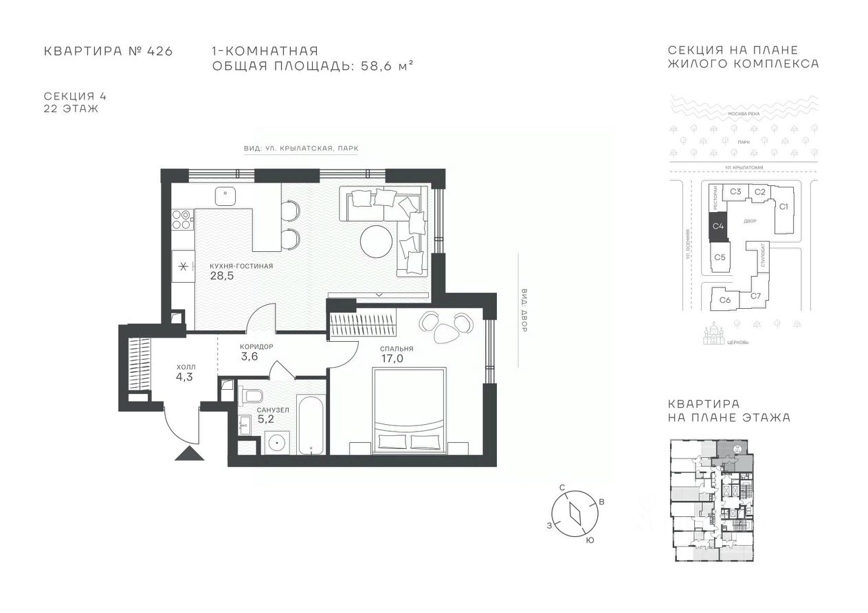 Окружение: - парки: Крылатские холмы, природно-исторический парк Москворецкий, Серебряный Бор, - учебные заведения: 5 образовательных комплексов, в которые входят 15 детских садов и 12 школьных корпусов. В удобной транспортной доступности гимназия им. Е. М. Примакова и международный лицей The International School of Moscow, - уникальные спортивные сооружения: гребной канал ''Крылатское'', легендарный велотрек ''Крылатское'', ''Лата Трэк'' для горнолыжников и сноубордистов, ледовый дворец ''Крылатское'', - единственный в Москве парк развлечений под открытым небом, включающий более 70 вариантов досуга для любого возраста и времени года. Срок сдачи проекта: 2 квартал 2027 года. Финансирование и эскроу-счет обеспечены банком МКБ.