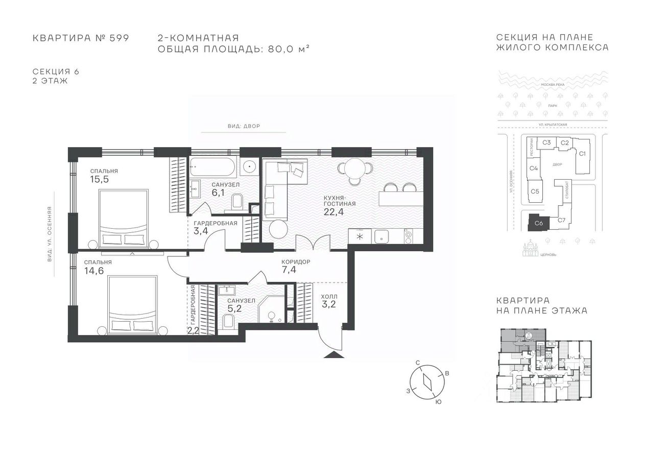 Успейте стать частью уникального проекта премиум-класса на западе Москвы! В продаже квартиры: 1-комнатные от 28,1 м², 2-комнатные от 61,2 м², 3-комнатные от 86,6 м², 4-комнатные от 110,7 м². Первый взнос от 30%! Рассрочка на 2 года без переплат! Крылатское 33 это премиальный жилой комплекс от специализированного застройщика ООО ''Сияние''. Самый высокий небоскрёб в районе, достигающий отметки в 150 метров и малоэтажный клубный формат высотой от 42 метров на приватной территории площадью 1,4 га. Великолепные виды на излучину Москва-реки, Живописный мост и урбанистический облик города. Эксклюзивные форматы квартир с панорамным остеклением и патио-террасами. Двухуровневый паркинг на 271м/м, премиальные входные группы, ресторан высокой кухни, детский сад и эко-маркет на территории комплекса. Эксклюзивные преимущества: доступ к wellness-центру, коворкингу и клубной гостиной только для резидентов. Над проектом работали именитые российские архитектурные бюро: архитектор проекта бюро ''Остоженка'', планировочные решения от бюро Александры Федоровой. Расположение Пешком: 5-7 минут - до парка Звезд, Крылатского парка и набережной Москвы-реки, 15 минут - до метро Крылатское Арбатско-Покровской линии, 15 минут - до пристани Крылатская. На автомобиле: 10 минут - до Третьего транспортного кольца, 15 минут - до Садового кольца и Москва- Сити, 20-30 минут - до Аэропорта Внуково, 30-40 минут - до Аэропорта Шереметьево. В 300 метрах от комплекса - удобная транспортная развязка с проспектом Маршала Жукова, обеспечивающая легкий доступ к ключевым магистралям. Благоустройство: