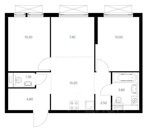 Впервые сдаётся двухкомнатная квартира с двумя изолированными спальнями и кухней-гостиной. Одну из комнат можно использовать как кабинет или детскую.