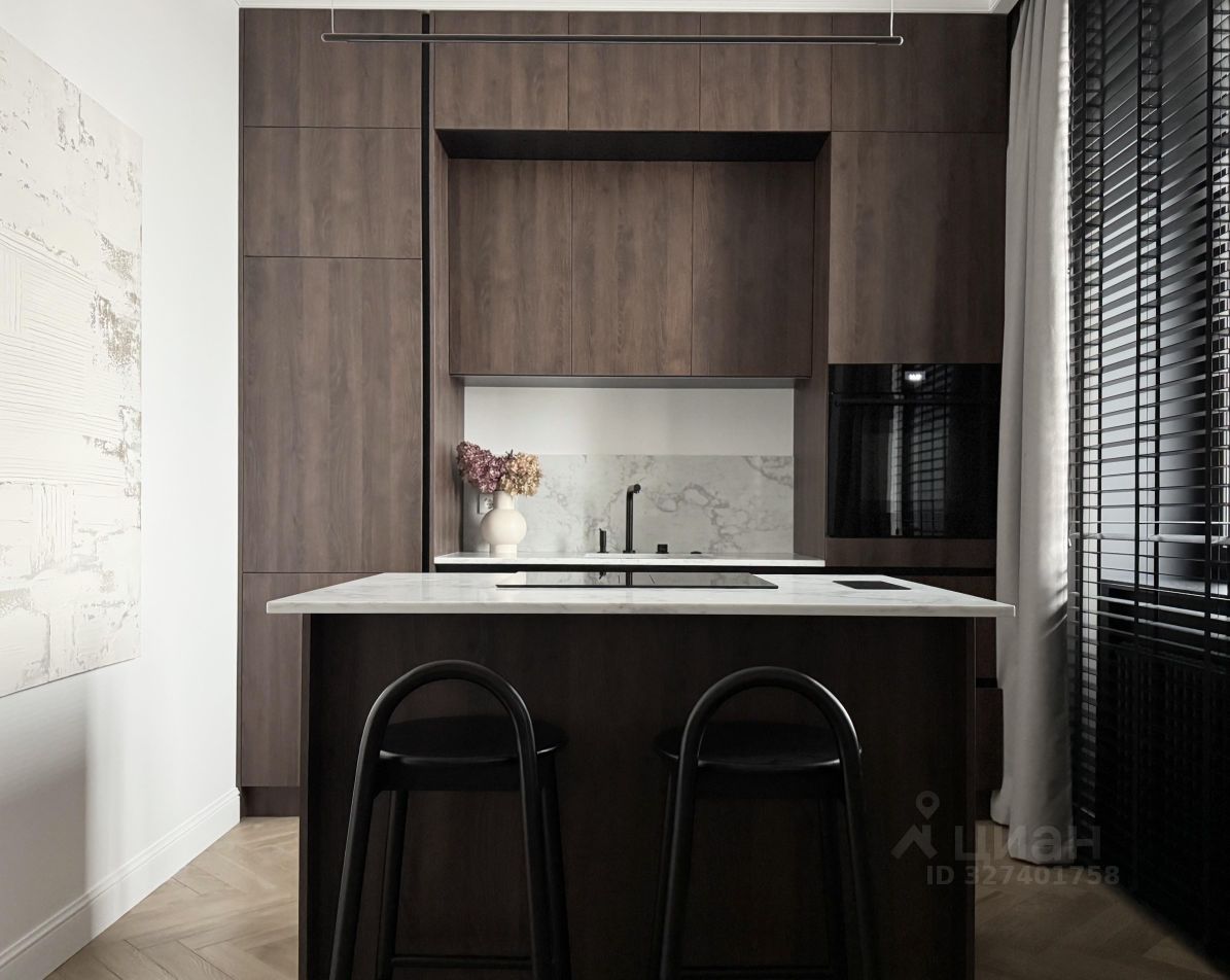 Остров, столешница на кухне и в санузле выполнена из кварцевого агломерата.