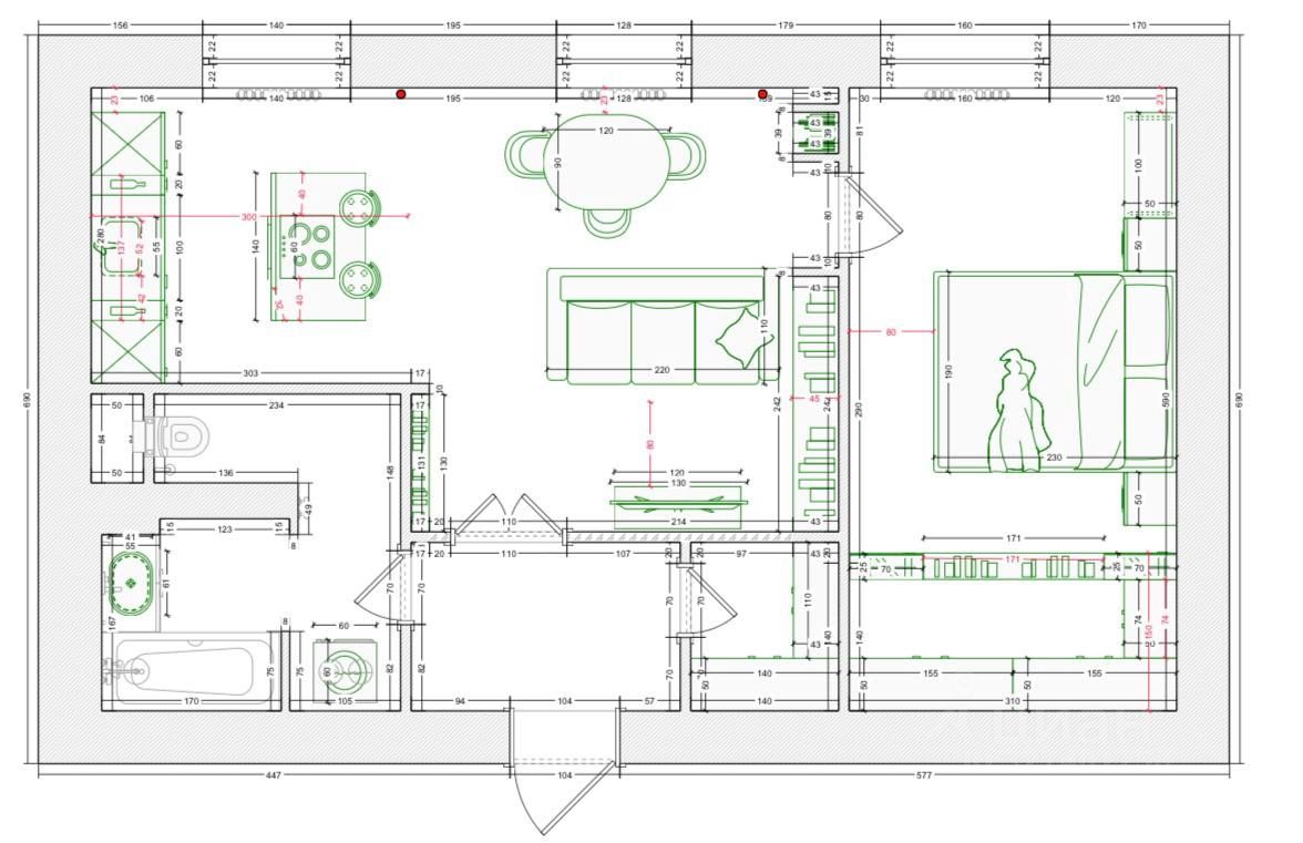 Современная планировка: - просторная кухня-гостиная - спальня с гардеробной комнатой - изолированная прихожая с гардеробной комнатой для верхней одежды и обуви - санузел с прачечным блоком
