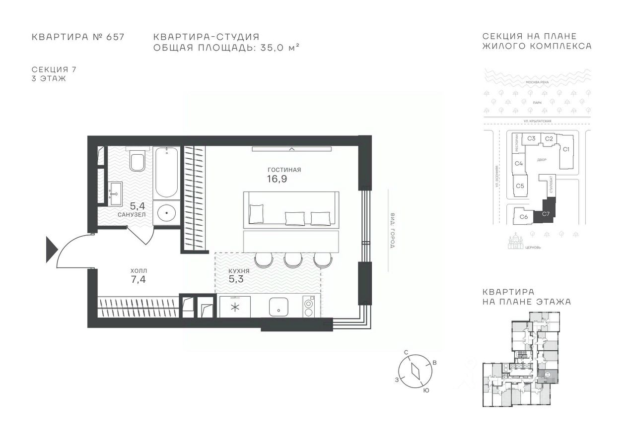 Успейте стать частью уникального проекта премиум-класса на западе Москвы! В продаже квартиры: 1-комнатные от 28,1 м², 2-комнатные от 61,2 м², 3-комнатные от 86,6 м², 4-комнатные от 110,7 м². Первый взнос от 30%! Рассрочка на 2 года без переплат! Крылатское 33 это премиальный жилой комплекс от специализированного застройщика ООО ''Сияние''. Самый высокий небоскрёб в районе, достигающий отметки в 150 метров и малоэтажный клубный формат высотой от 42 метров на приватной территории площадью 1,4 га. Великолепные виды на излучину Москва-реки, Живописный мост и урбанистический облик города. Эксклюзивные форматы квартир с панорамным остеклением и патио-террасами. Двухуровневый паркинг на 271м/м, премиальные входные группы, ресторан высокой кухни, детский сад и эко-маркет на территории комплекса. Эксклюзивные преимущества: доступ к wellness-центру, коворкингу и клубной гостиной только для резидентов. Над проектом работали именитые российские архитектурные бюро: архитектор проекта бюро ''Остоженка'', планировочные решения от бюро Александры Федоровой. Расположение Пешком: 5-7 минут - до парка Звезд, Крылатского парка и набережной Москвы-реки, 15 минут - до метро Крылатское Арбатско-Покровской линии, 15 минут - до пристани Крылатская. На автомобиле: 10 минут - до Третьего транспортного кольца, 15 минут - до Садового кольца и Москва- Сити, 20-30 минут - до Аэропорта Внуково, 30-40 минут - до Аэропорта Шереметьево. В 300 метрах от комплекса - удобная транспортная развязка с проспектом Маршала Жукова, обеспечивающая легкий доступ к ключевым магистралям. Благоустройство:
