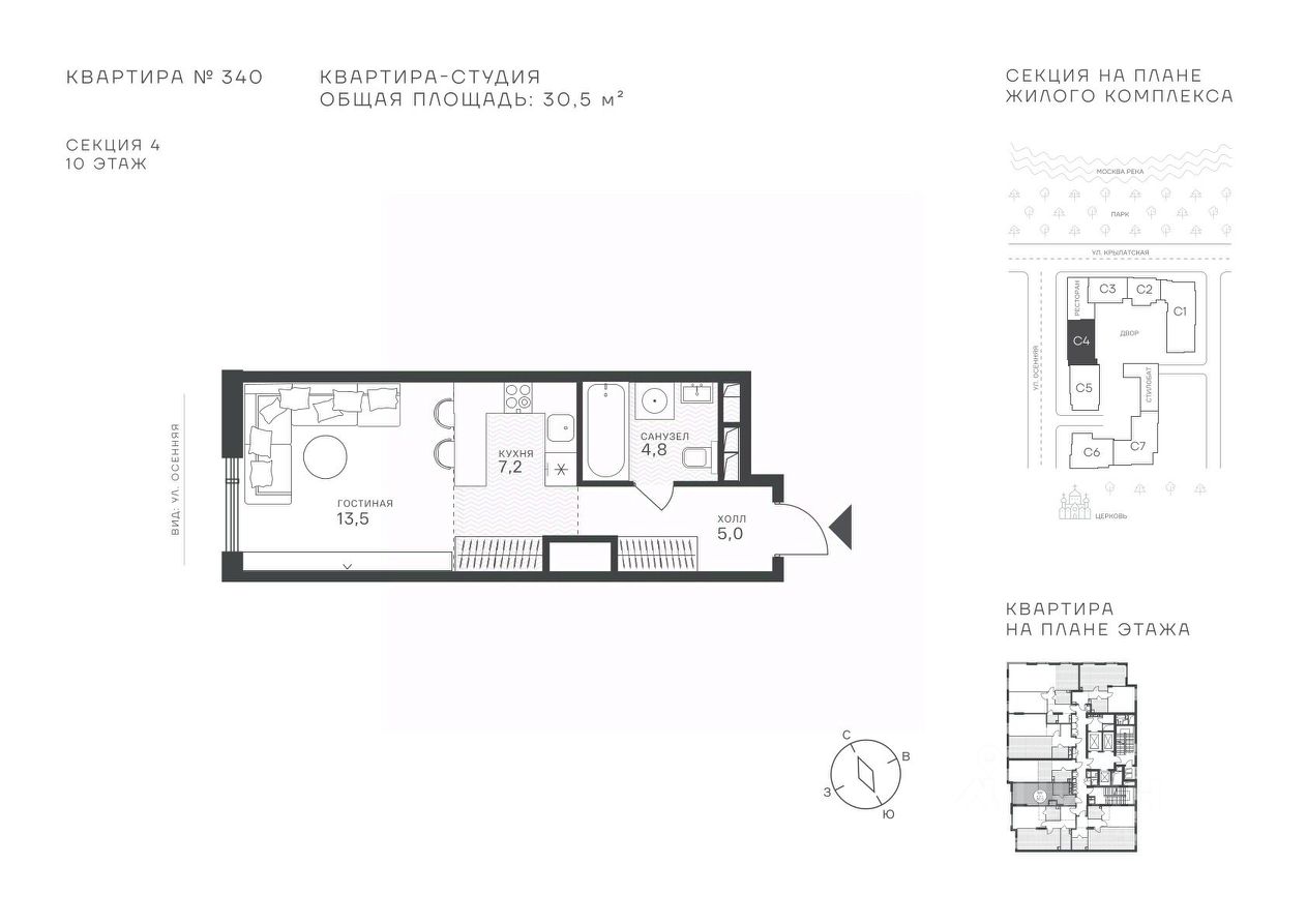 Успейте стать частью уникального проекта премиум-класса на западе Москвы! В продаже квартиры: 1-комнатные от 28,1 м², 2-комнатные от 61,2 м², 3-комнатные от 86,6 м², 4-комнатные от 110,7 м². Первый взнос от 30%! Рассрочка на 2 года без переплат! Крылатское 33 это премиальный жилой комплекс от специализированного застройщика ООО ''Сияние''. Самый высокий небоскрёб в районе, достигающий отметки в 150 метров и малоэтажный клубный формат высотой от 42 метров на приватной территории площадью 1,4 га. Великолепные виды на излучину Москва-реки, Живописный мост и урбанистический облик города. Эксклюзивные форматы квартир с панорамным остеклением и патио-террасами. Двухуровневый паркинг на 271м/м, премиальные входные группы, ресторан высокой кухни, детский сад и эко-маркет на территории комплекса. Эксклюзивные преимущества: доступ к wellness-центру, коворкингу и клубной гостиной только для резидентов. Над проектом работали именитые российские архитектурные бюро: архитектор проекта бюро ''Остоженка'', планировочные решения от бюро Александры Федоровой. Расположение Пешком: 5-7 минут - до парка Звезд, Крылатского парка и набережной Москвы-реки, 15 минут - до метро Крылатское Арбатско-Покровской линии, 15 минут - до пристани Крылатская. На автомобиле: 10 минут - до Третьего транспортного кольца, 15 минут - до Садового кольца и Москва- Сити, 20-30 минут - до Аэропорта Внуково, 30-40 минут - до Аэропорта Шереметьево. В 300 метрах от комплекса - удобная транспортная развязка с проспектом Маршала Жукова, обеспечивающая легкий доступ к ключевым магистралям. Благоустройство: