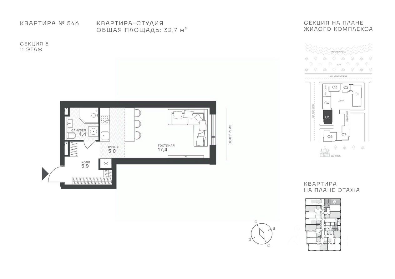 Успейте стать частью уникального проекта премиум-класса на западе Москвы! В продаже квартиры: 1-комнатные от 28,1 м², 2-комнатные от 61,2 м², 3-комнатные от 86,6 м², 4-комнатные от 110,7 м². Первый взнос от 30%! Рассрочка на 2 года без переплат! Крылатское 33 это премиальный жилой комплекс от специализированного застройщика ООО ''Сияние''. Самый высокий небоскрёб в районе, достигающий отметки в 150 метров и малоэтажный клубный формат высотой от 42 метров на приватной территории площадью 1,4 га. Великолепные виды на излучину Москва-реки, Живописный мост и урбанистический облик города. Эксклюзивные форматы квартир с панорамным остеклением и патио-террасами. Двухуровневый паркинг на 271м/м, премиальные входные группы, ресторан высокой кухни, детский сад и эко-маркет на территории комплекса. Эксклюзивные преимущества: доступ к wellness-центру, коворкингу и клубной гостиной только для резидентов. Над проектом работали именитые российские архитектурные бюро: архитектор проекта бюро ''Остоженка'', планировочные решения от бюро Александры Федоровой. Расположение Пешком: 5-7 минут - до парка Звезд, Крылатского парка и набережной Москвы-реки, 15 минут - до метро Крылатское Арбатско-Покровской линии, 15 минут - до пристани Крылатская. На автомобиле: 10 минут - до Третьего транспортного кольца, 15 минут - до Садового кольца и Москва- Сити, 20-30 минут - до Аэропорта Внуково, 30-40 минут - до Аэропорта Шереметьево. В 300 метрах от комплекса - удобная транспортная развязка с проспектом Маршала Жукова, обеспечивающая легкий доступ к ключевым магистралям. Благоустройство: