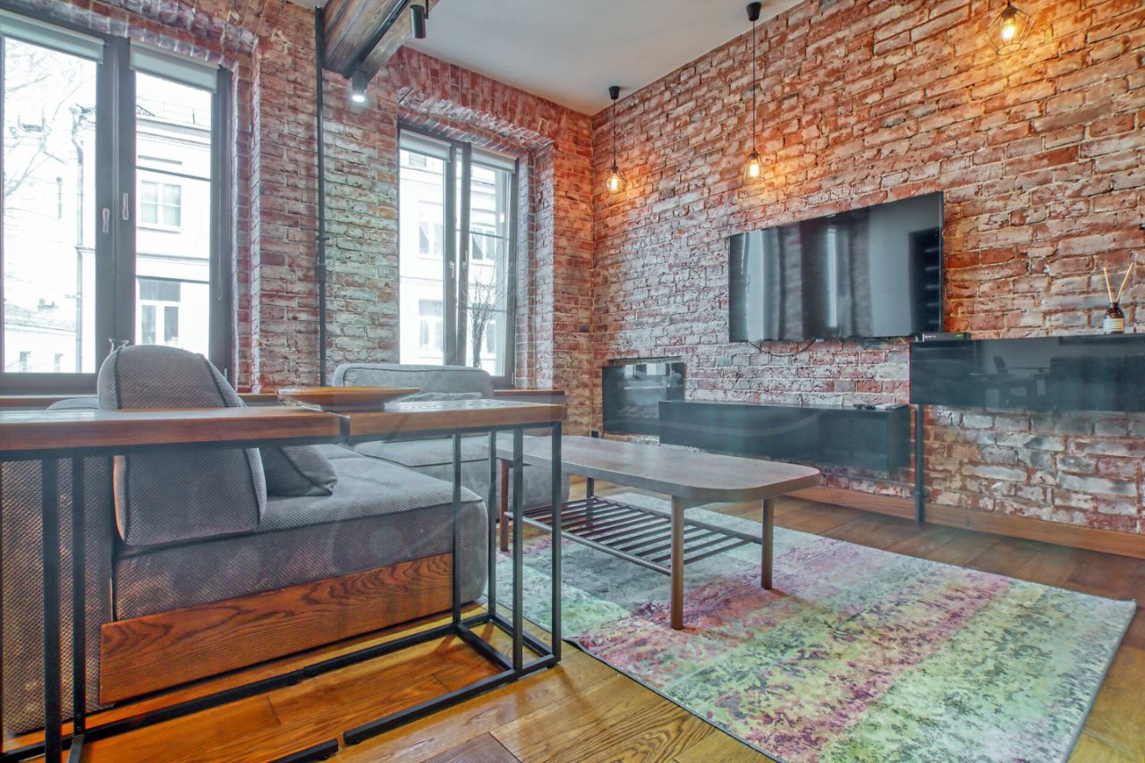 Красивый подъезд со смотровыми окнами. Все окна квартиры выходят во двор и на 20 дом. Рядом театры, сад Эрмитаж. Уютная квартира с удобной планировкой в стиле Лофт. Квартира полностью меблирована, оснащена бытовой техникой. Планировкой пространство зонировано: прихожая со встроенным гардеробом, гостевой туалет с постирочной зоной, санузел с ванной, гостиная зона с электрическим камином и диванной группой перед тв, зона кухни, столовая зона. Спальня с гардеробной, вторая спальня с встроенным шкафом- купе во всю стену. Подогрев плиточных покрытий, кондиционирование. Въезд во двор под шлагбаум.