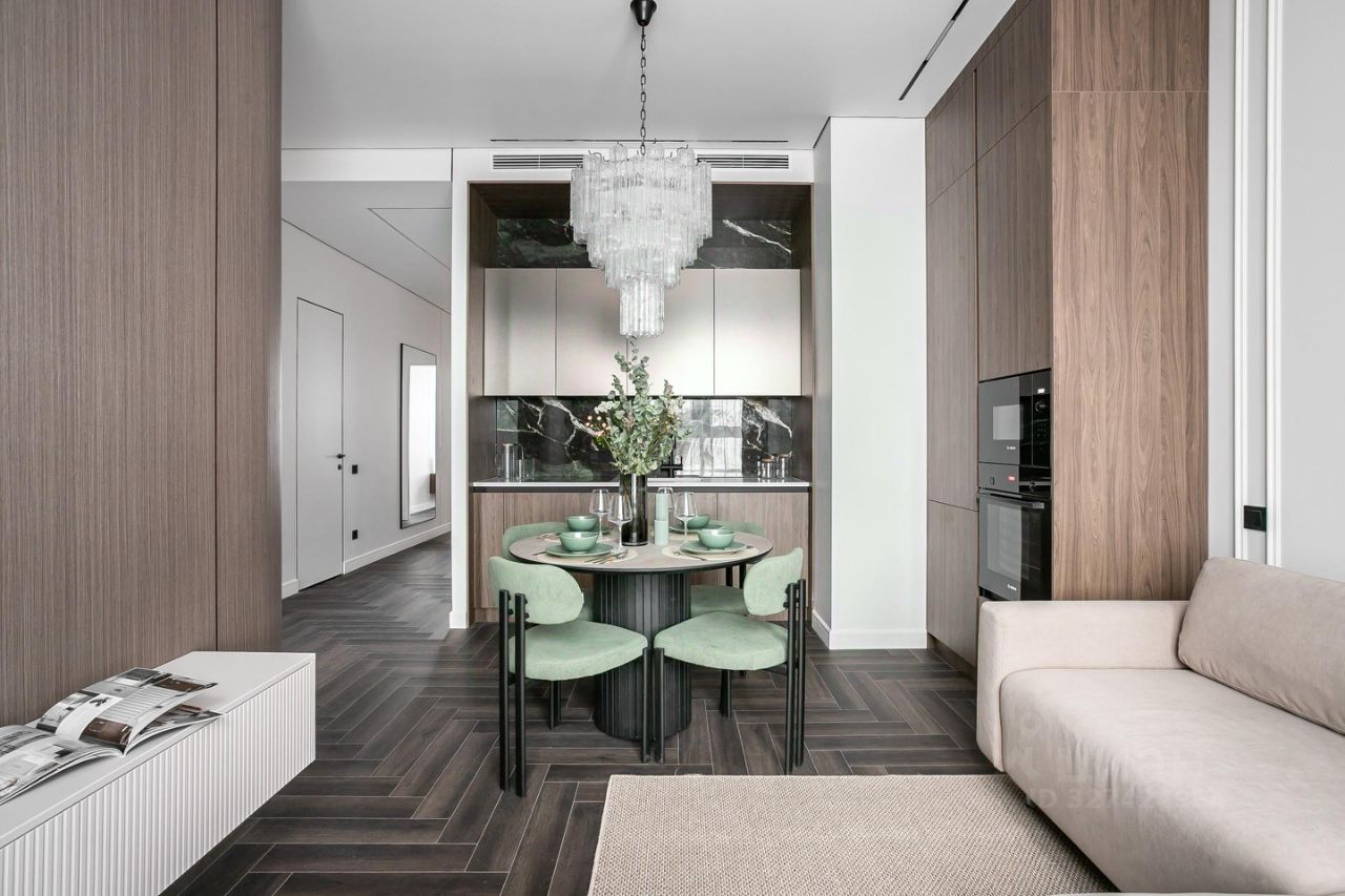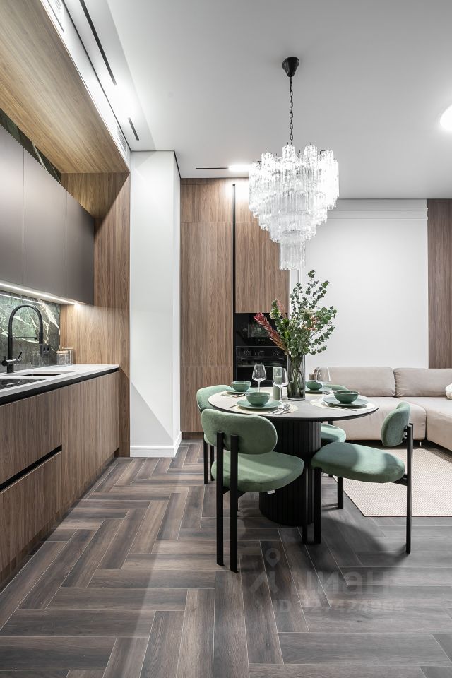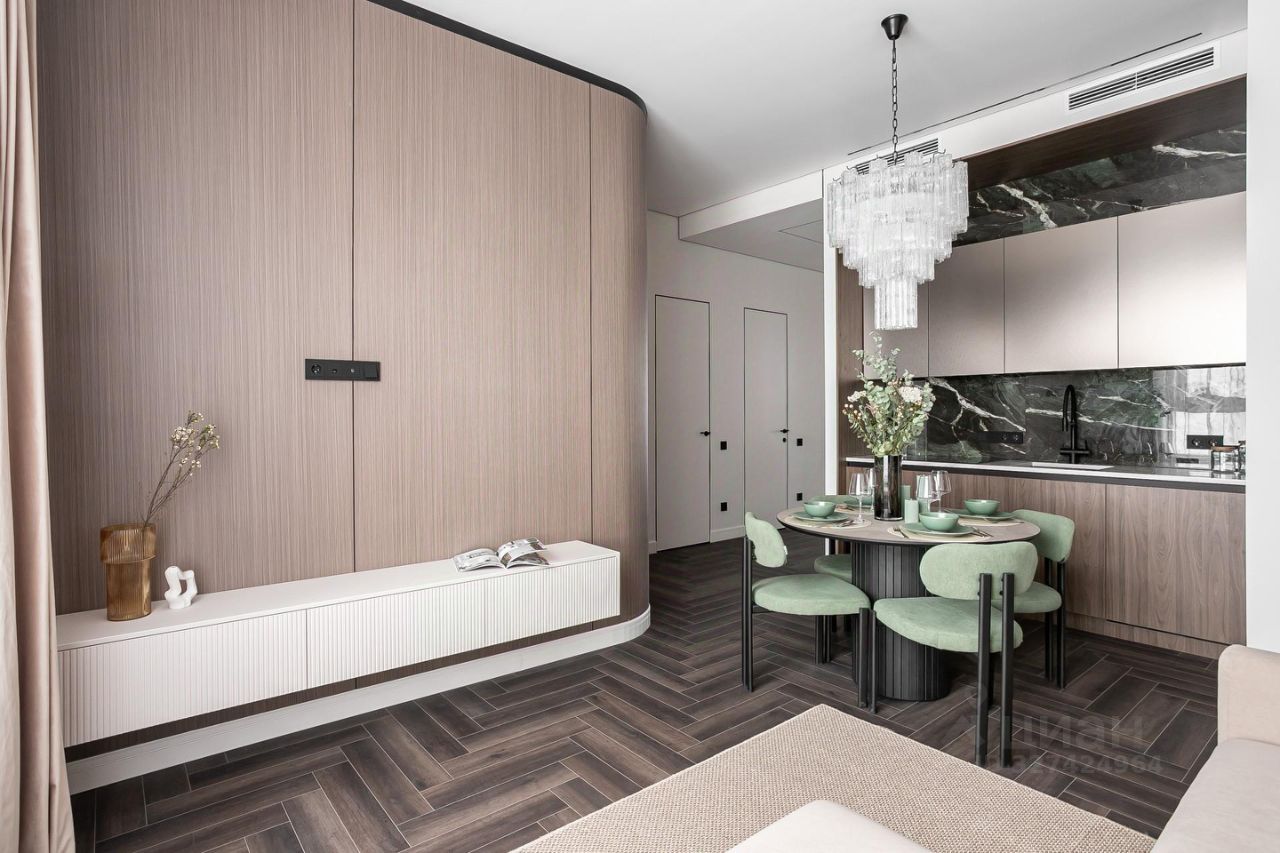 Продуманы удобные системы хранения, разведено канальное кондиционирование. Вся корпусная мебель выполнена на заказ из качественных материалов.