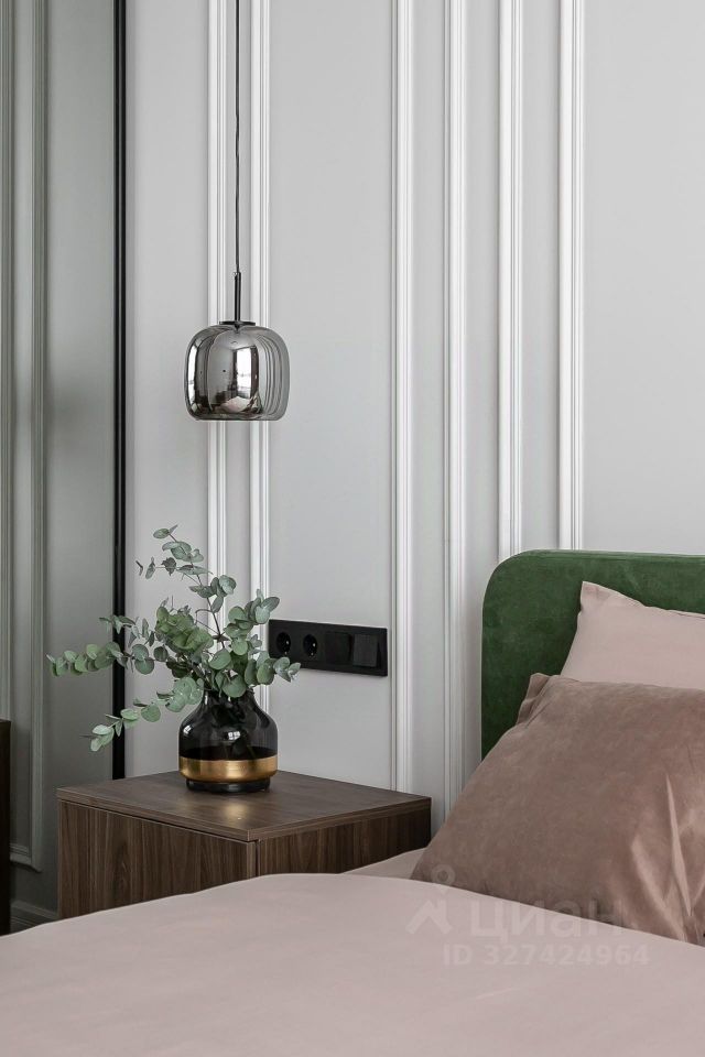 Напольное покрытие — кварцвинил, потолки — ГКЛ. Стены покрашены, в декоре использованы панели МДФ и изящные молдинги — создают мягкий, гармоничный интерьер с лёгкими акцентами.