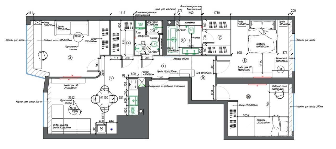 Продуманы удобные системы хранения, разведено канальное кондиционирование.
