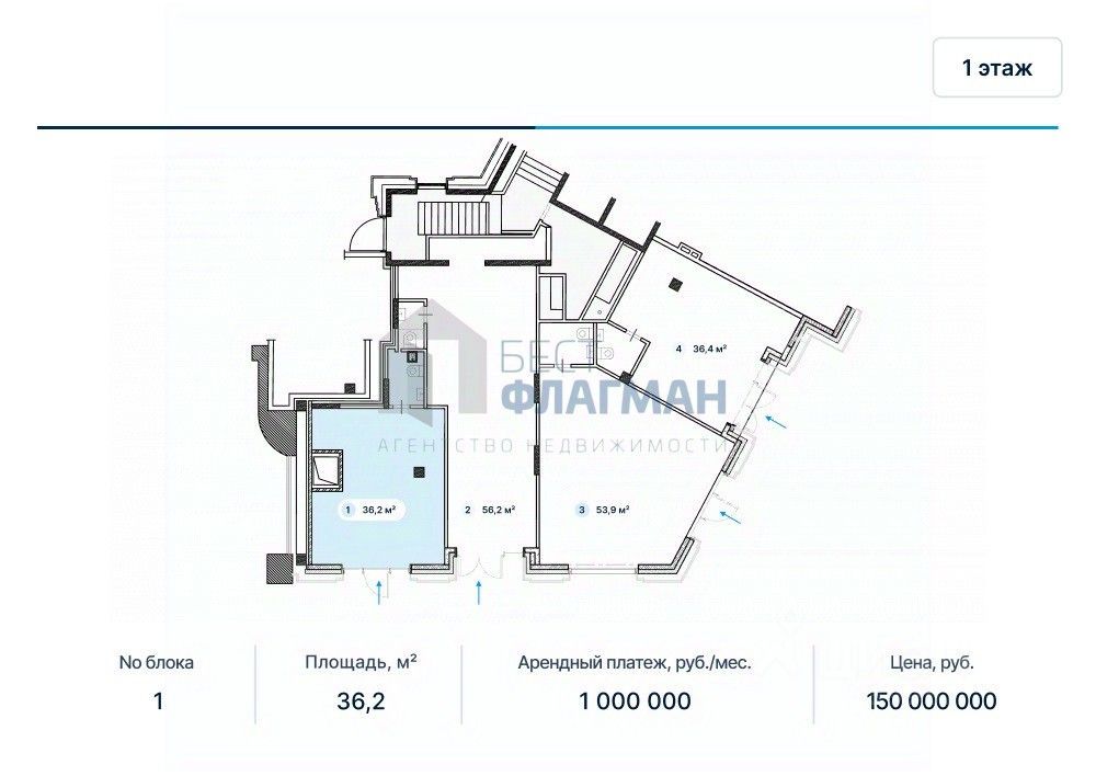 Арт. 132281324 Сдается в аренду помещение свободного назначения 36,2 кв.м. формата Street Retail на 1 этаже жилого здания.