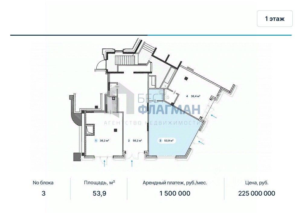 Арт. 132281493 Сдается в аренду помещение свободного назначения 53,9 кв.м. формата Street Retail на 1 этаже жилого здания.