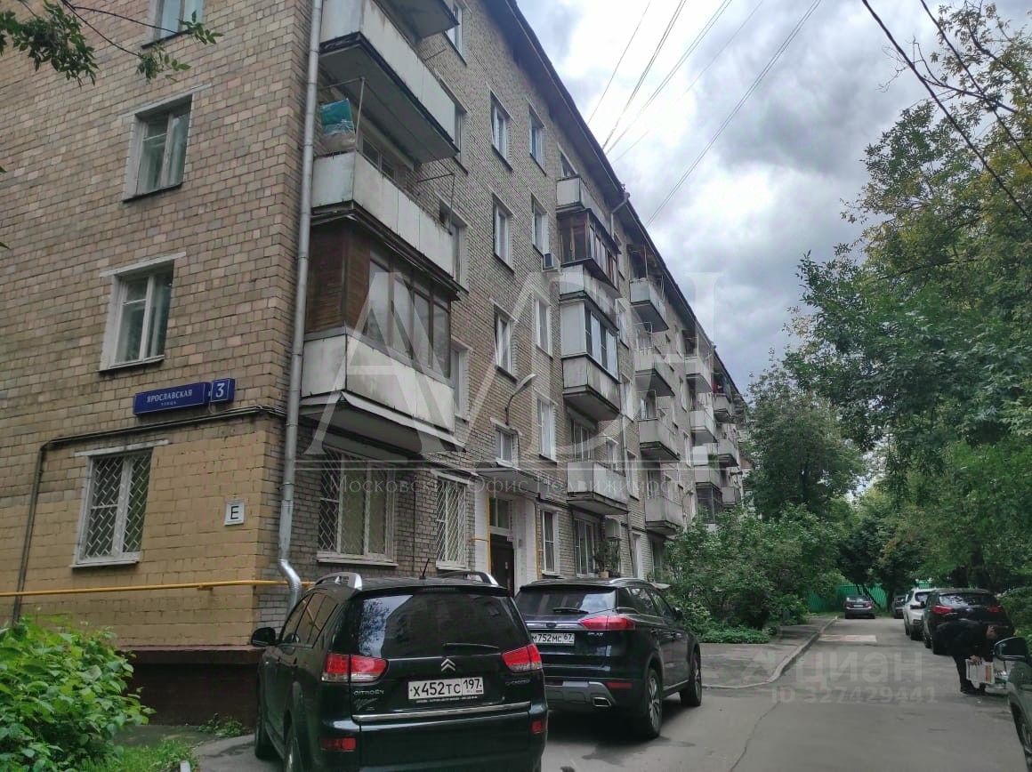 Продается 3-х комнатная квартира на 1-м этаже 5-ти этажного кирпичного дома в г. Москве, ул. Ярославская, д. 3. Общая площадь 54 кв.м., кухня 5 кв.м., комнаты 20, 12 и 12 кв.м.. На окнах установлены решетки. Санузел совмещенный с ванной.
