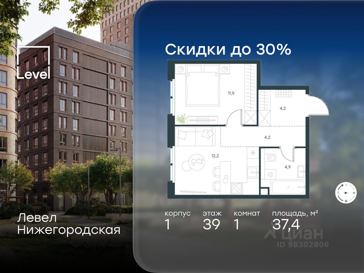 продам 1-к, Левел Нижегородская ЖК, 118 773 721 ₽