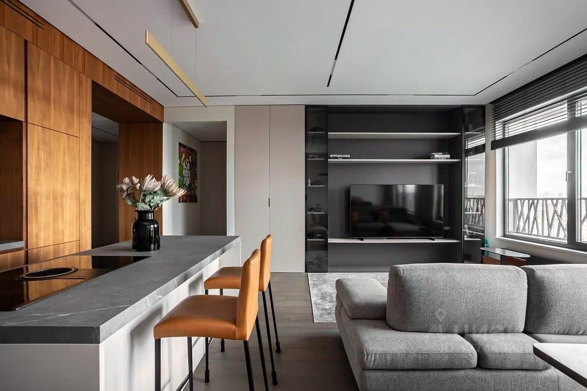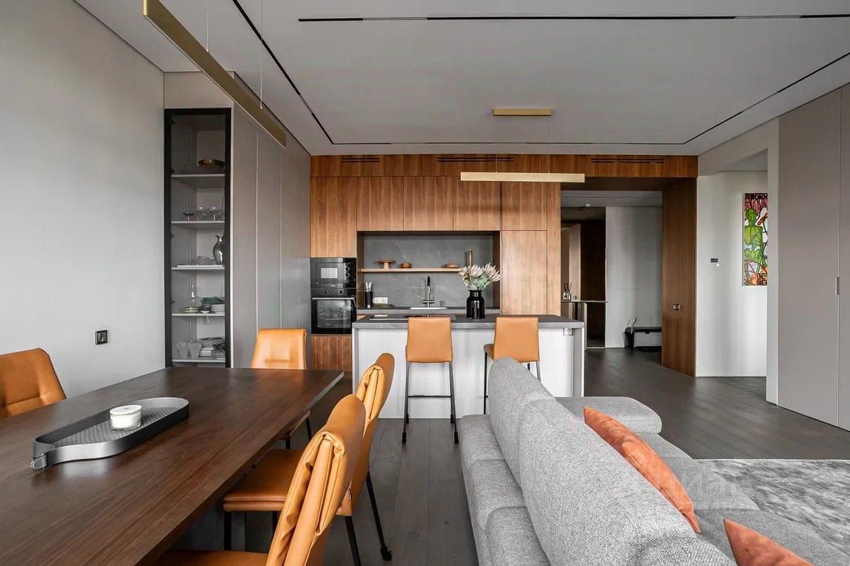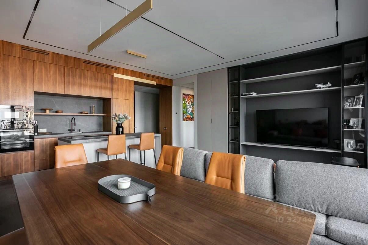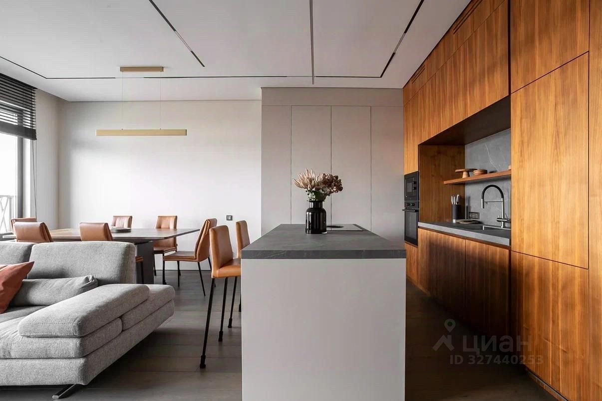 Общая площадь 103 кв.м Просторная кухня-гостиная 43 кв.м. Мастер спальня 16 кв. м с выходом в большую гардеробную с окном. Мастер ванная 6 кв.м Детская 14 кв.м Гостевой санузел с душевой, постирочная. Потолки 3 метра В отделке использованы дорогие, качественные и современные материалы: кухня и стеновые панели в коридоре выполнены из шпона ореха, на полу инженерная доска Finex, раковины в санузлах, остров и фартук на кухне - из керамогранита, сенсорные панели слива и инсталляция ТЕСЕ в санузлах, разноплановые световые решения. Вся мебель выполнена по индивидуальному заказу. В квартире центральное кондиционирование LG.
