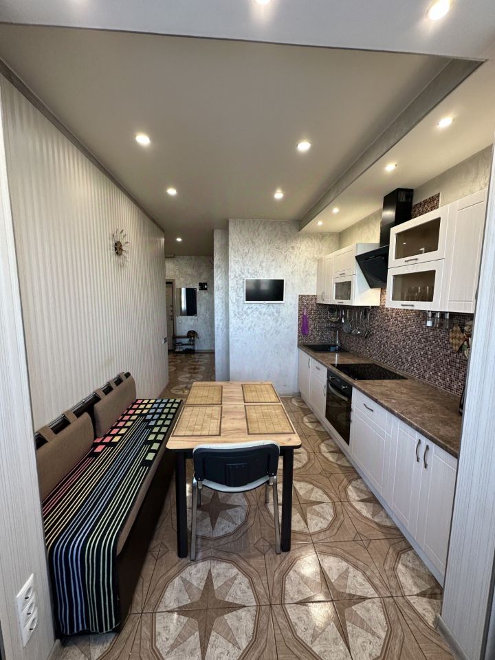 Просторная планировка,с лоджией (64м2) ,проведен евроремонт,теплый пол в коридоре и кухне,наполнение входит в стоимость,бонусом,состояние идеальное