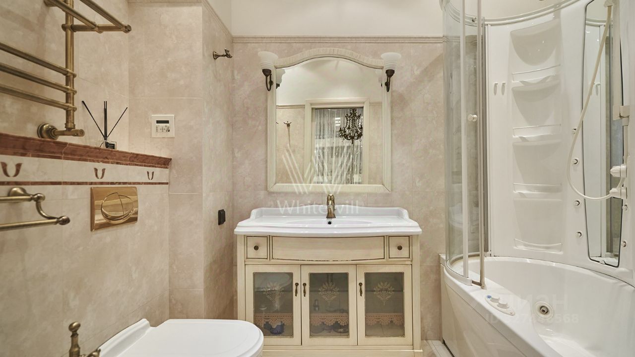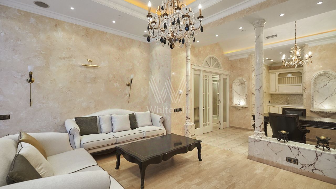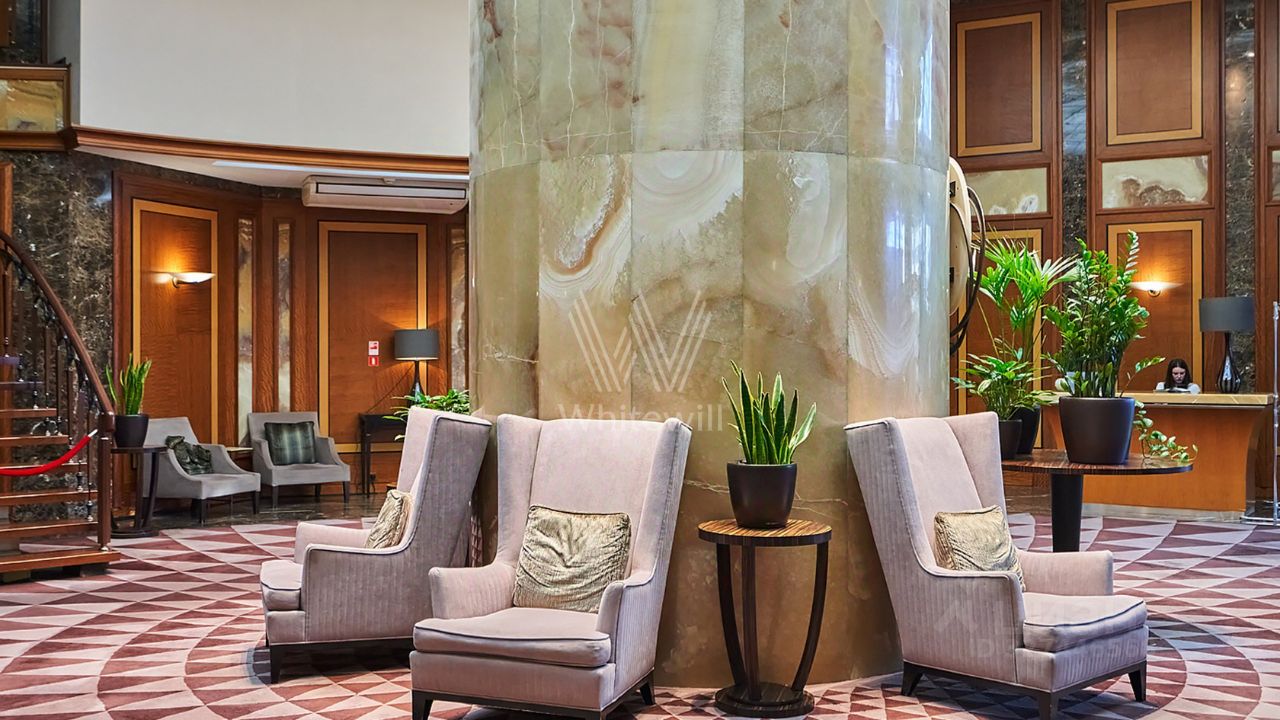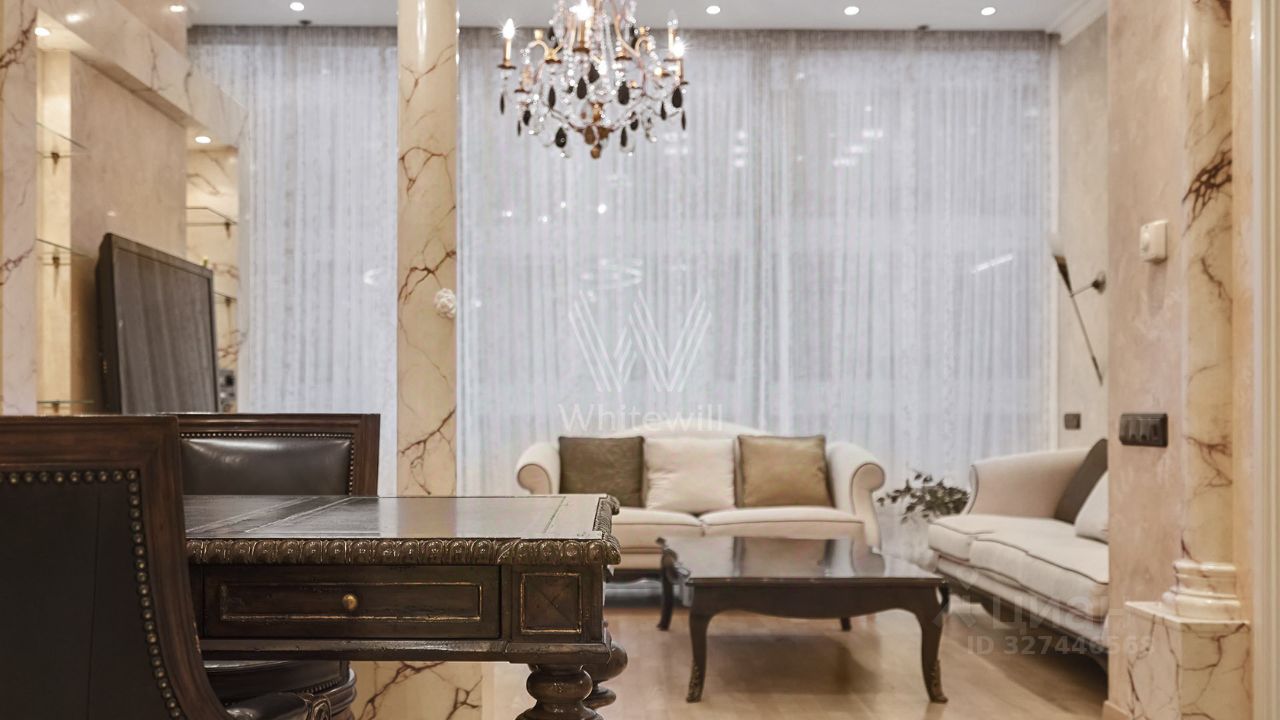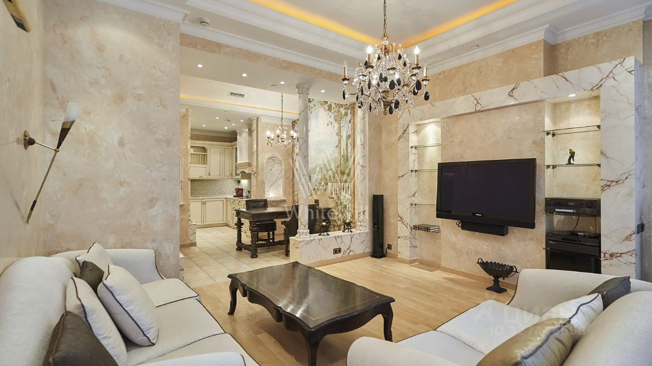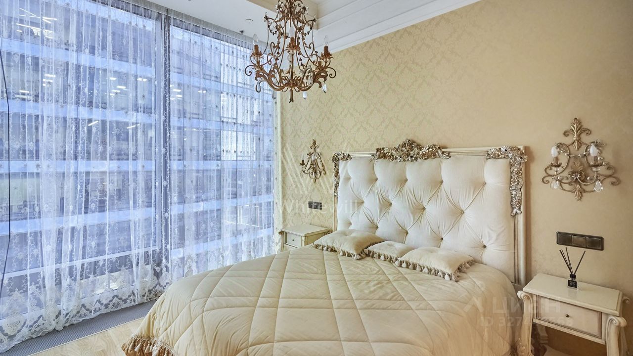 Просторные апартаменты c одной спальней площадью 81 м² в башне ''Федерация Запад'' на пятьдесят четвёртом этаже. Интерьер оформлен в стиле итальянской классики и украшен колоннами и художественными росписями. Планировка: кухня-гостиная, мастер-спальня со своим санузлом и гардеробом, второй санузел, гардеробная, холл. Апартамент укомплектован мебелью и бытовой техникой. Панорамные окна с видом на город и башню ''Федерация Восток''.