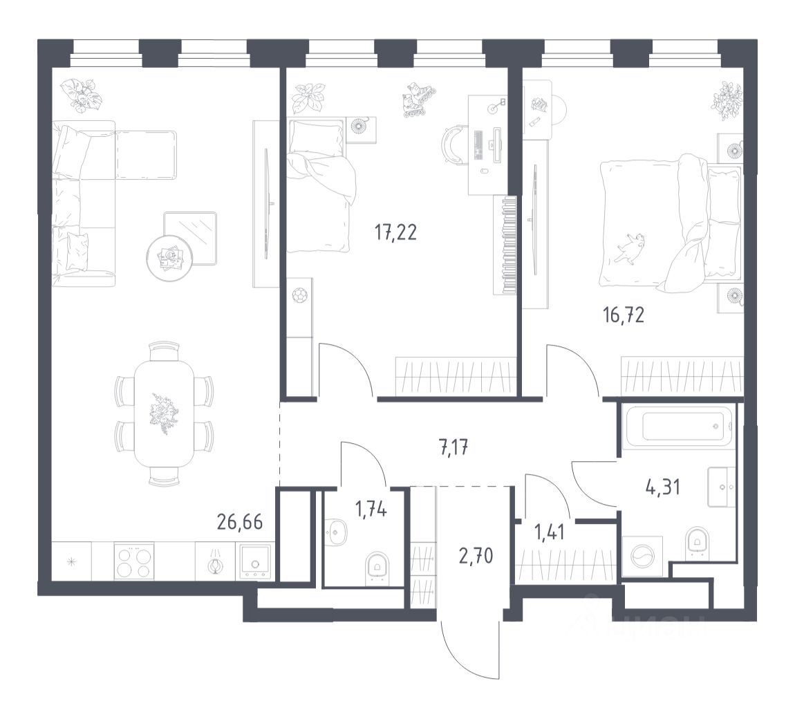 Строим кварталы для жизни с заботой о будущем. Предлагается 2-комнатная квартира бизнес-класса площадью 77,93 кв.м в корпусе 5 на 18-м этаже, в жилом комплексе ''Квартал на воде''.