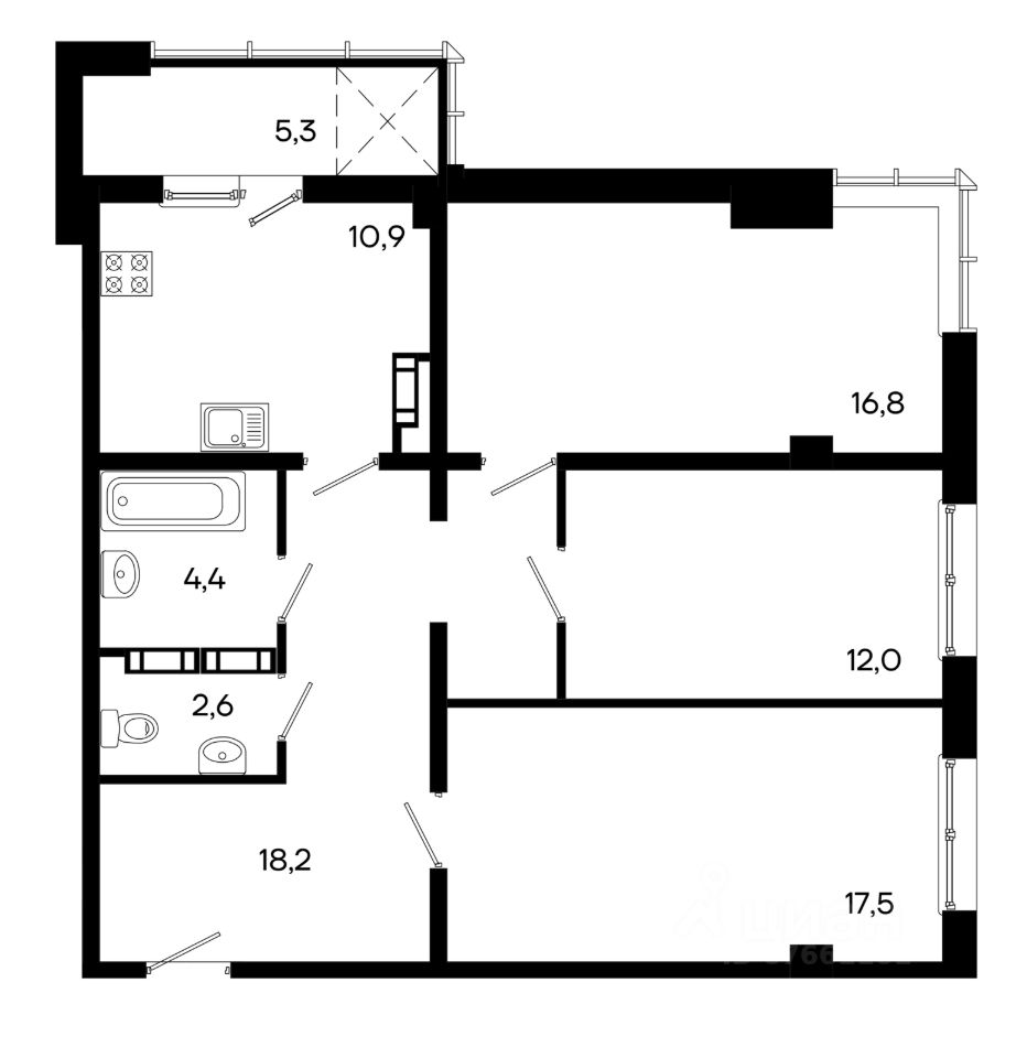 продам 3-к, Севастопольская, 4115 786 000 ₽