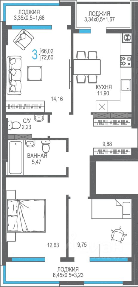 Общая площадь72,6 м2