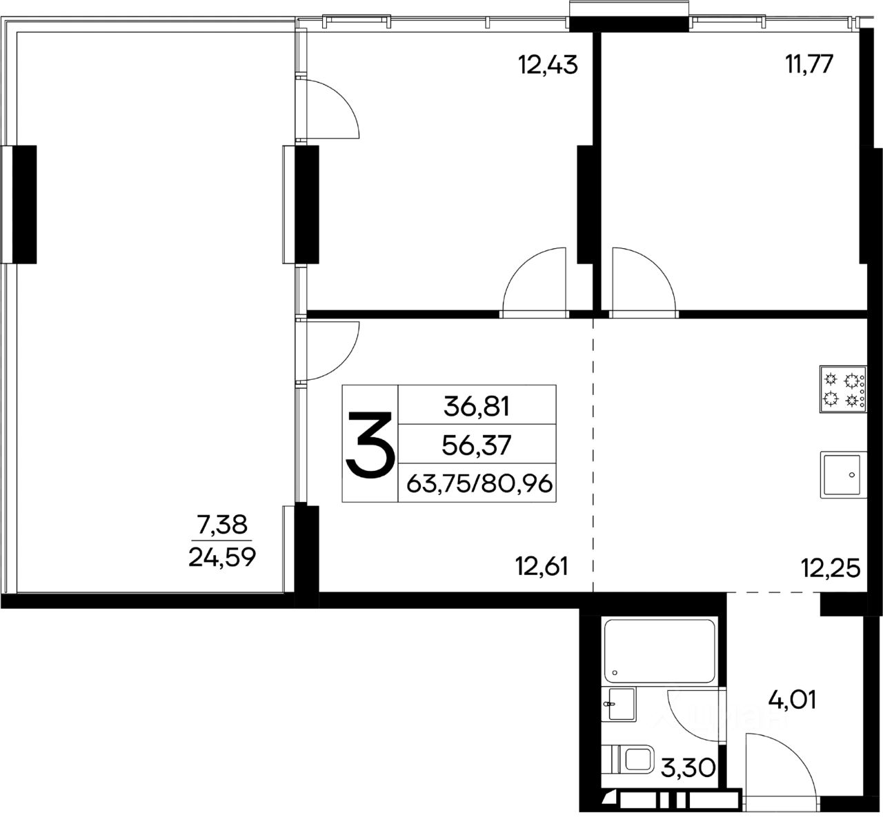 Общая площадь80,96 м2