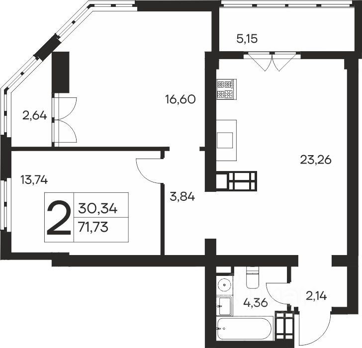 Общая площадь71,73 м2