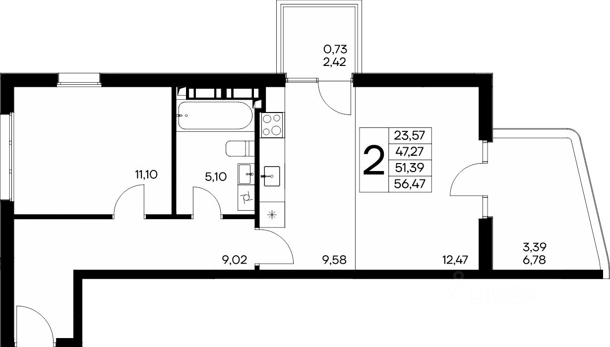 Общая площадь58,96 м2