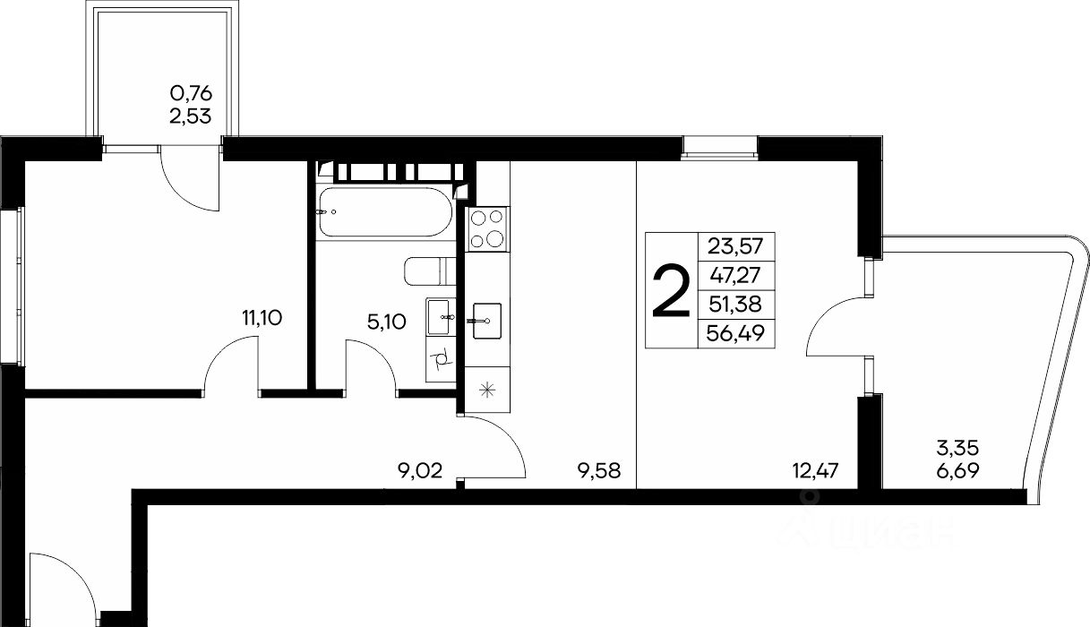 Общая площадь56,49 м2
