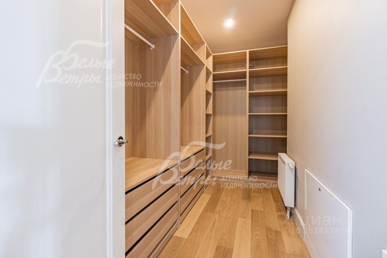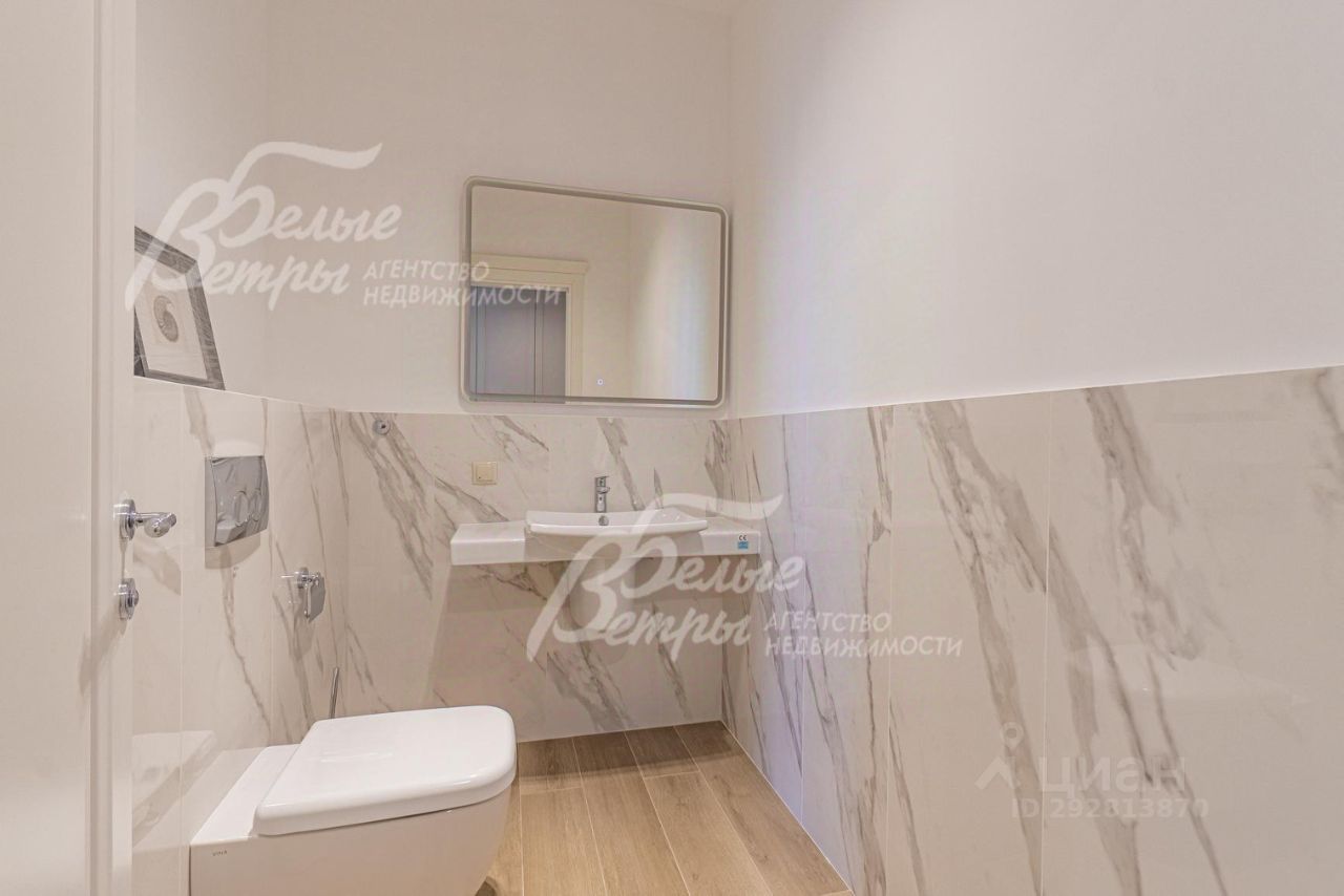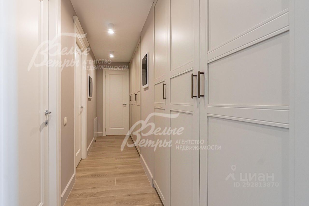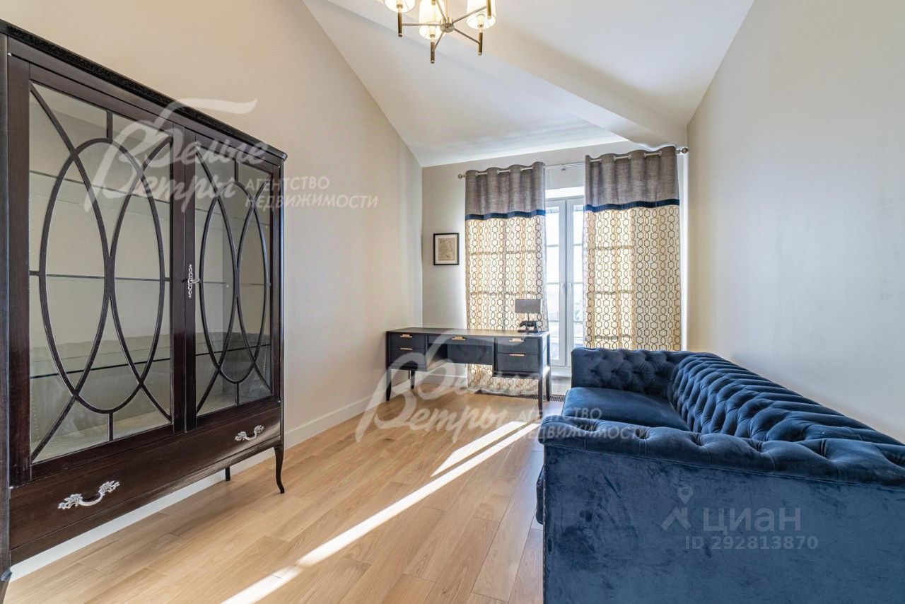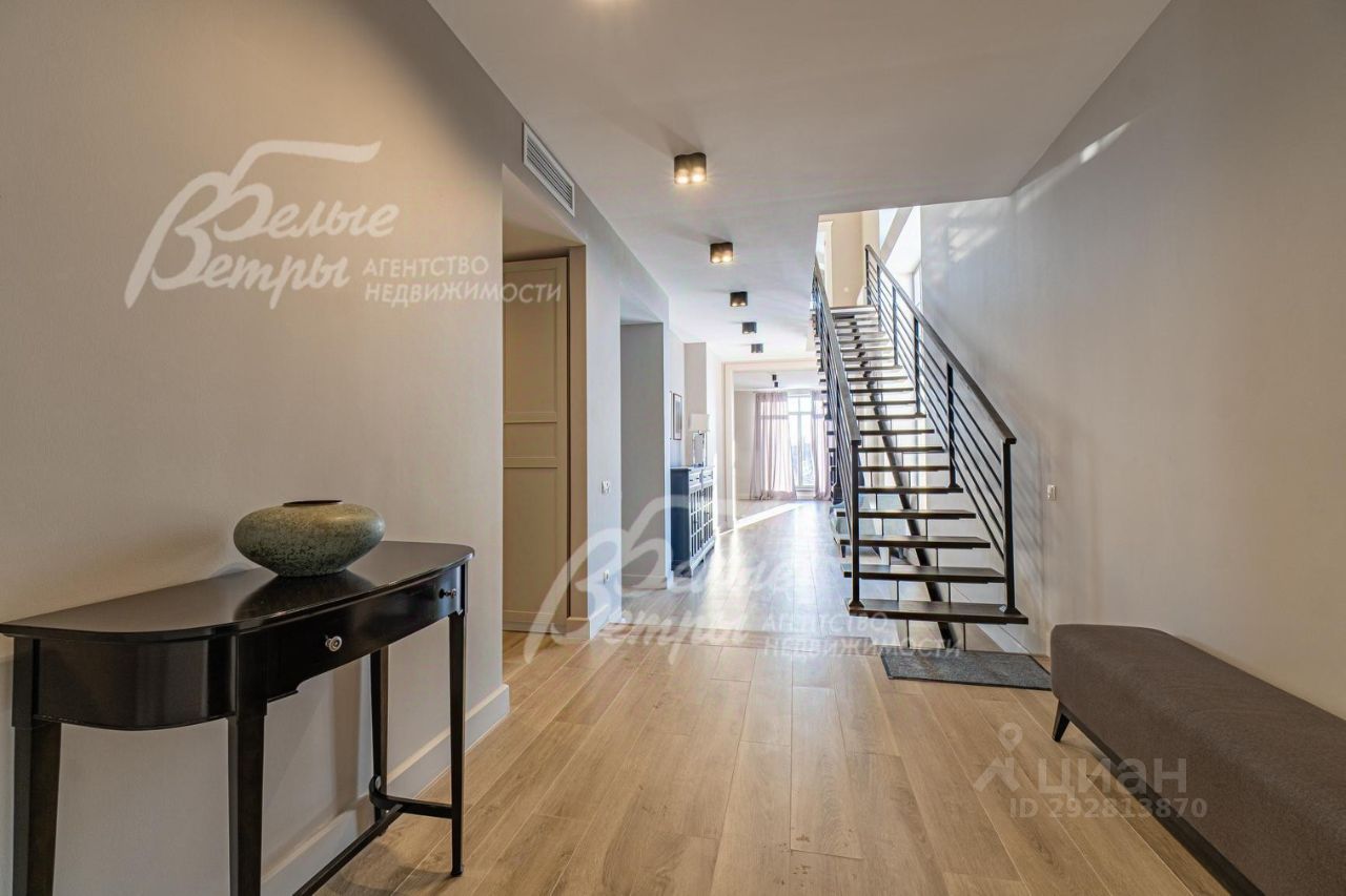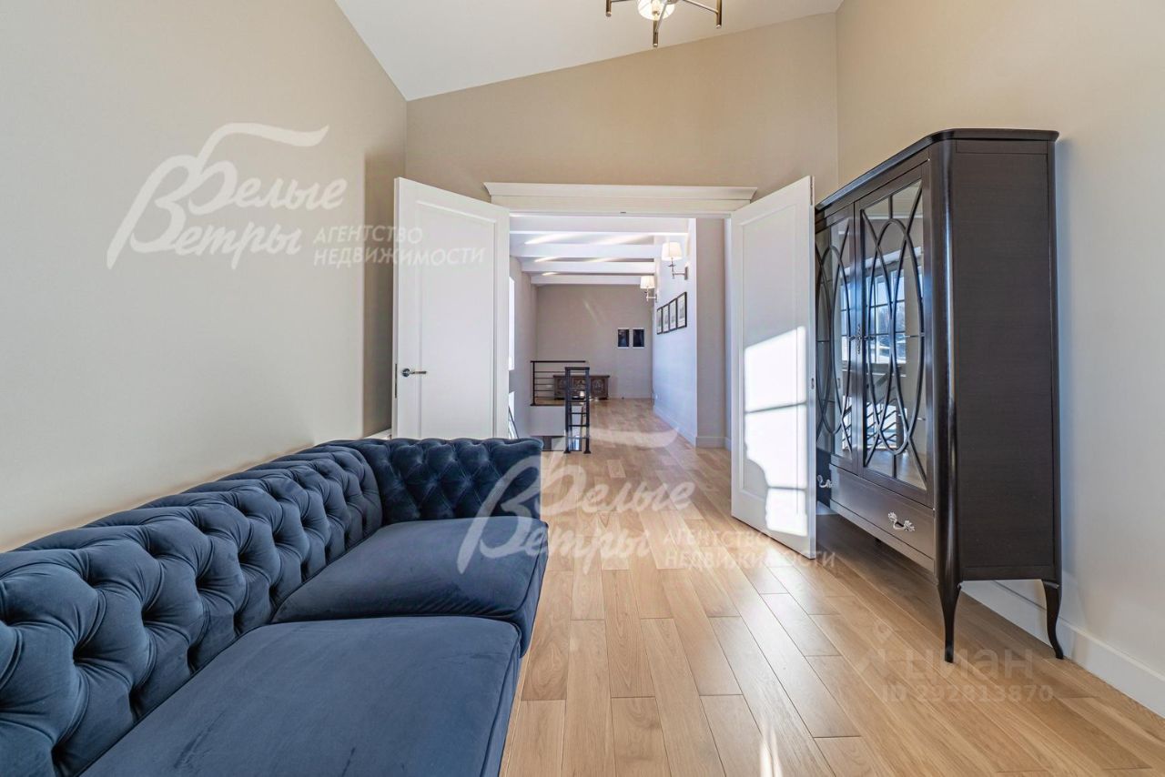 Описание внутренней отделки: дизайнерская отделка в современном стиле: комбинированная отделка стен-покраска и вставки из высококачественных обоев, на полу итальянская плитка и инженерная доска. Дубовая лестница. Двери - натуральный шпон. Потолки окрашены, разноуровневые. Встроенные шкафы и гардеробные..