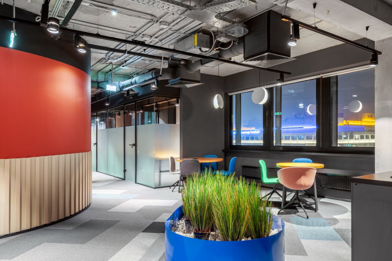 Офисное пространство имеет эффективную планировку на 162 рабочих места, переговорные, мягкие зоны для отдыха и общения, кухни со встроенной техникой, телефонные кабинки для индивидуальной работы, готовая серверная.