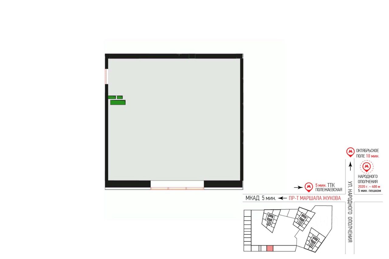 Подъезд на автомобиле к жилому комплексу в районе Хорошево-Мневники обеспечивает пр-т Маршала Жукова. Удаленность от станции метро ''Народное ополчение'' 8 мин пешком.
