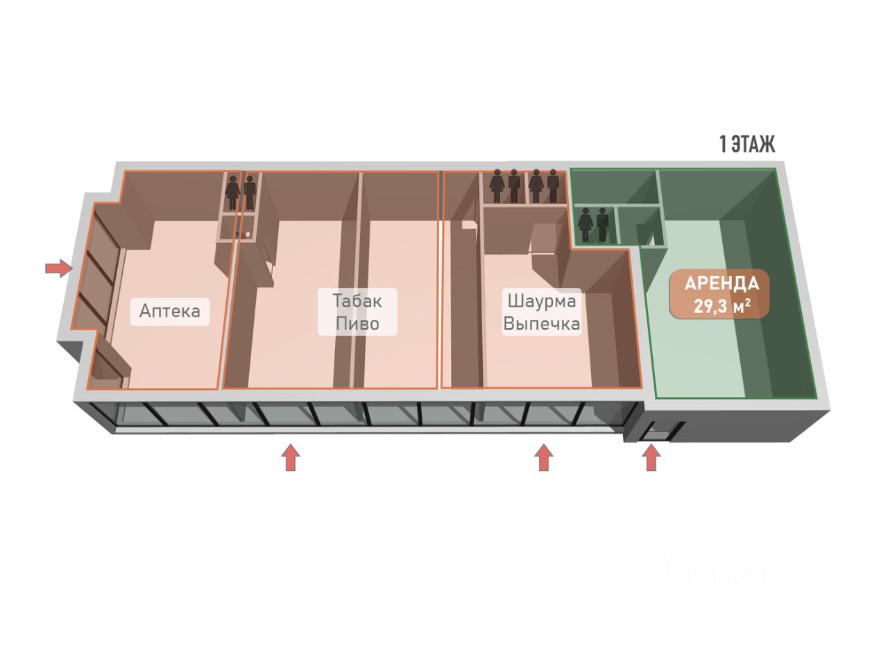 Помещение 29,3 м² на 1 этаже с отдельным входом.